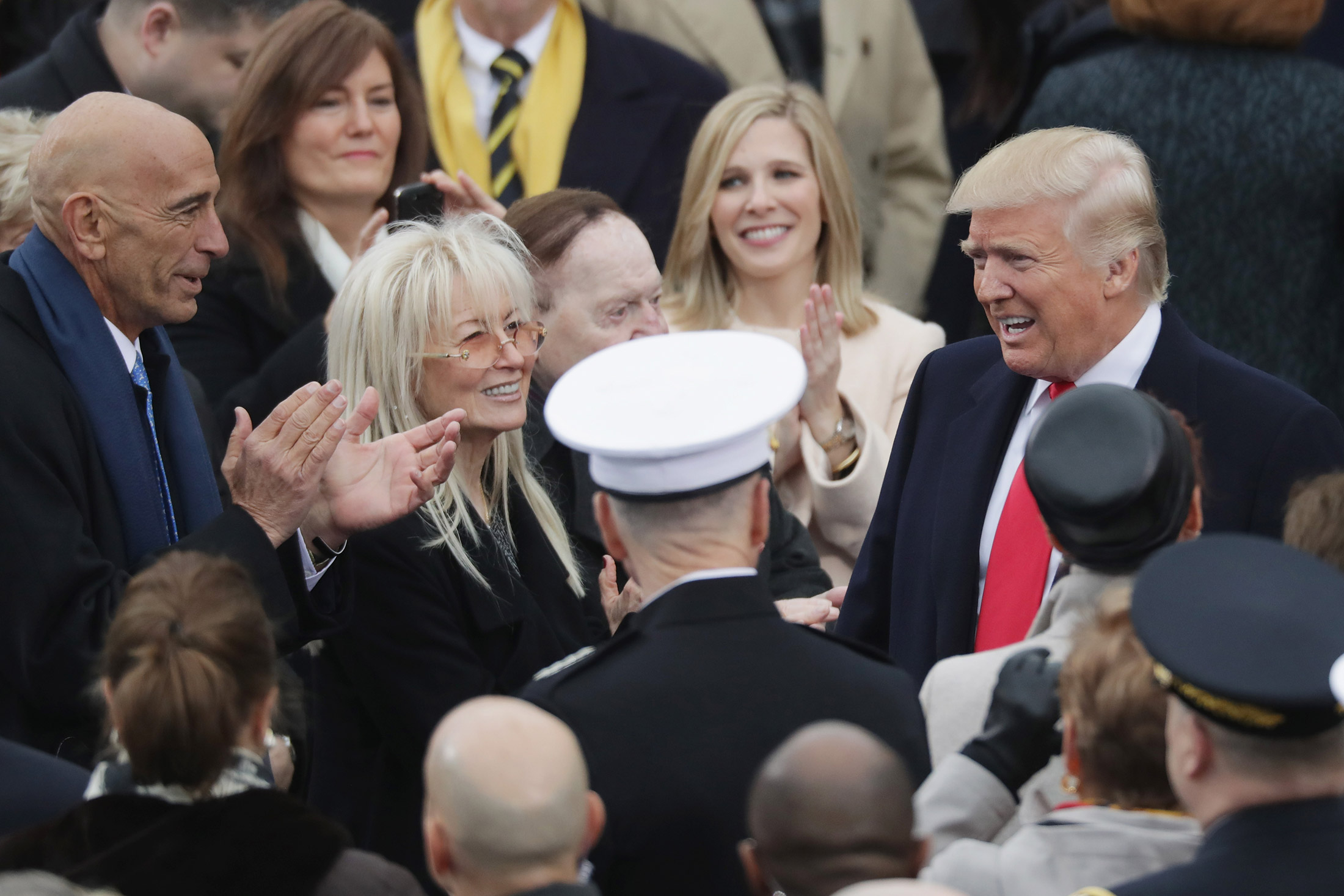 汤姆·巴拉克(最左)在2017年1月20日总统就职典礼上与唐纳德·特朗普(最右)握手。