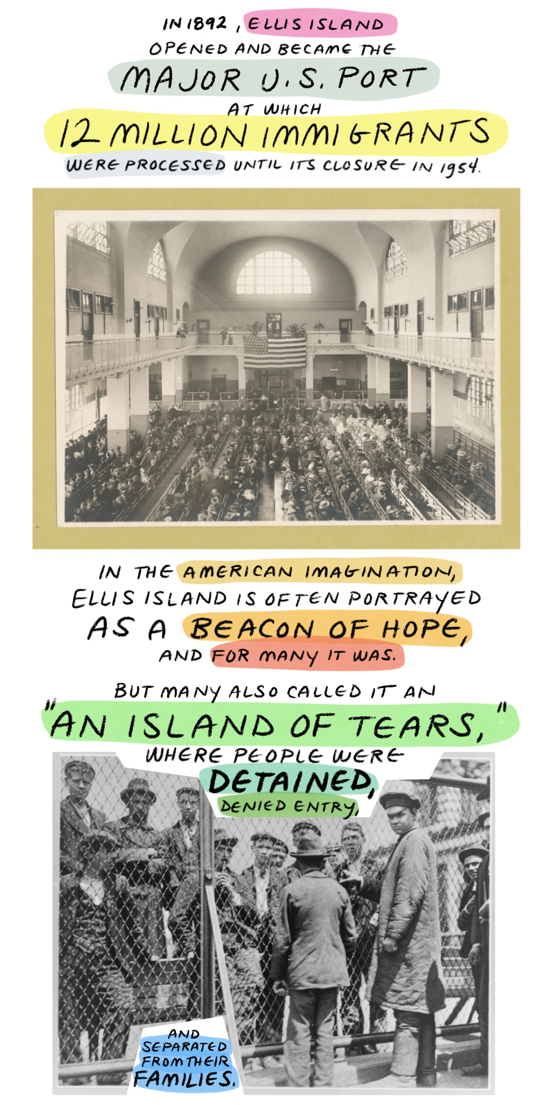 - “ 登陆埃利斯岛; 新的移民建筑昨天开放,纽约时报,1892年