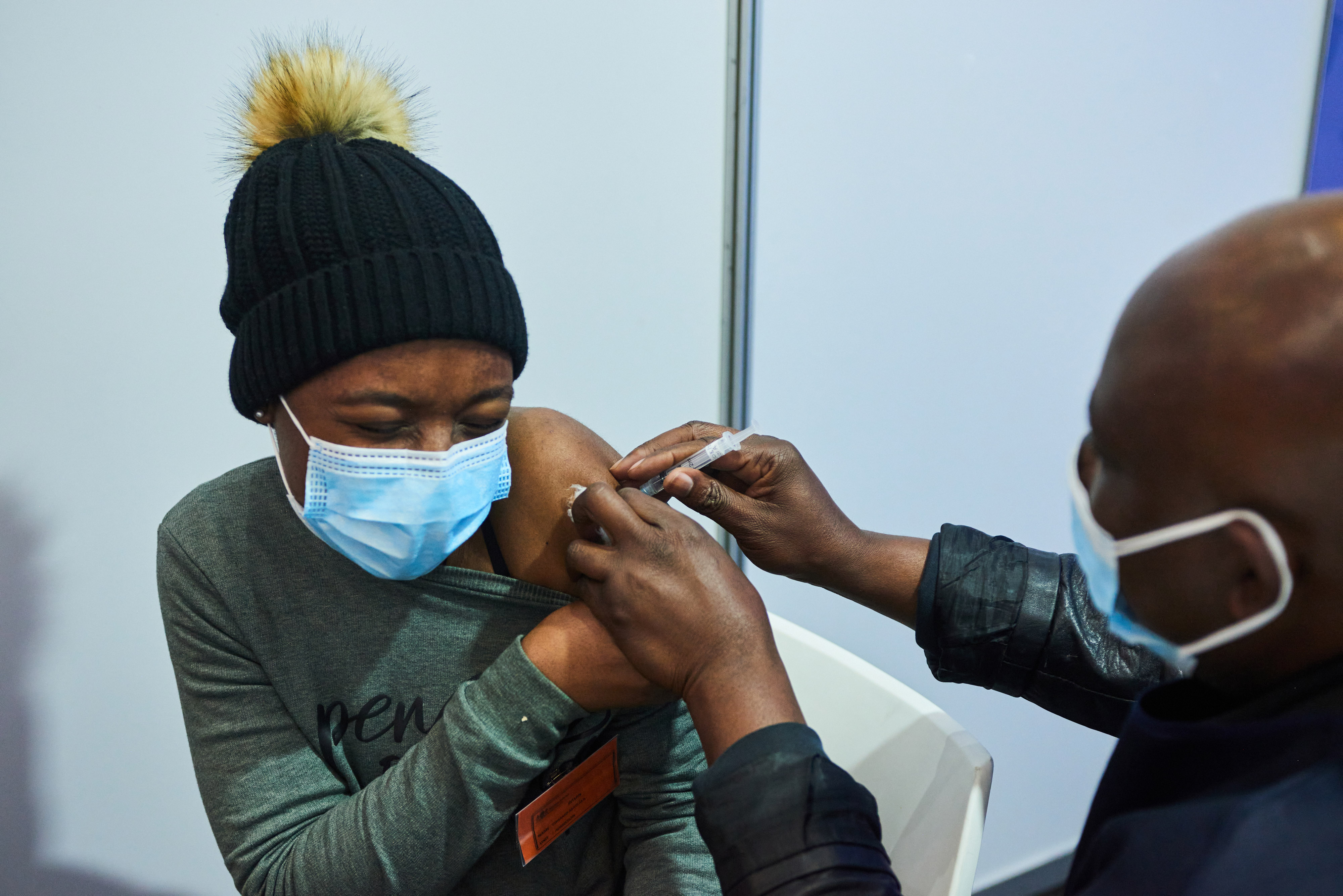 一位居民在南非约翰内斯堡接种新冠疫苗。