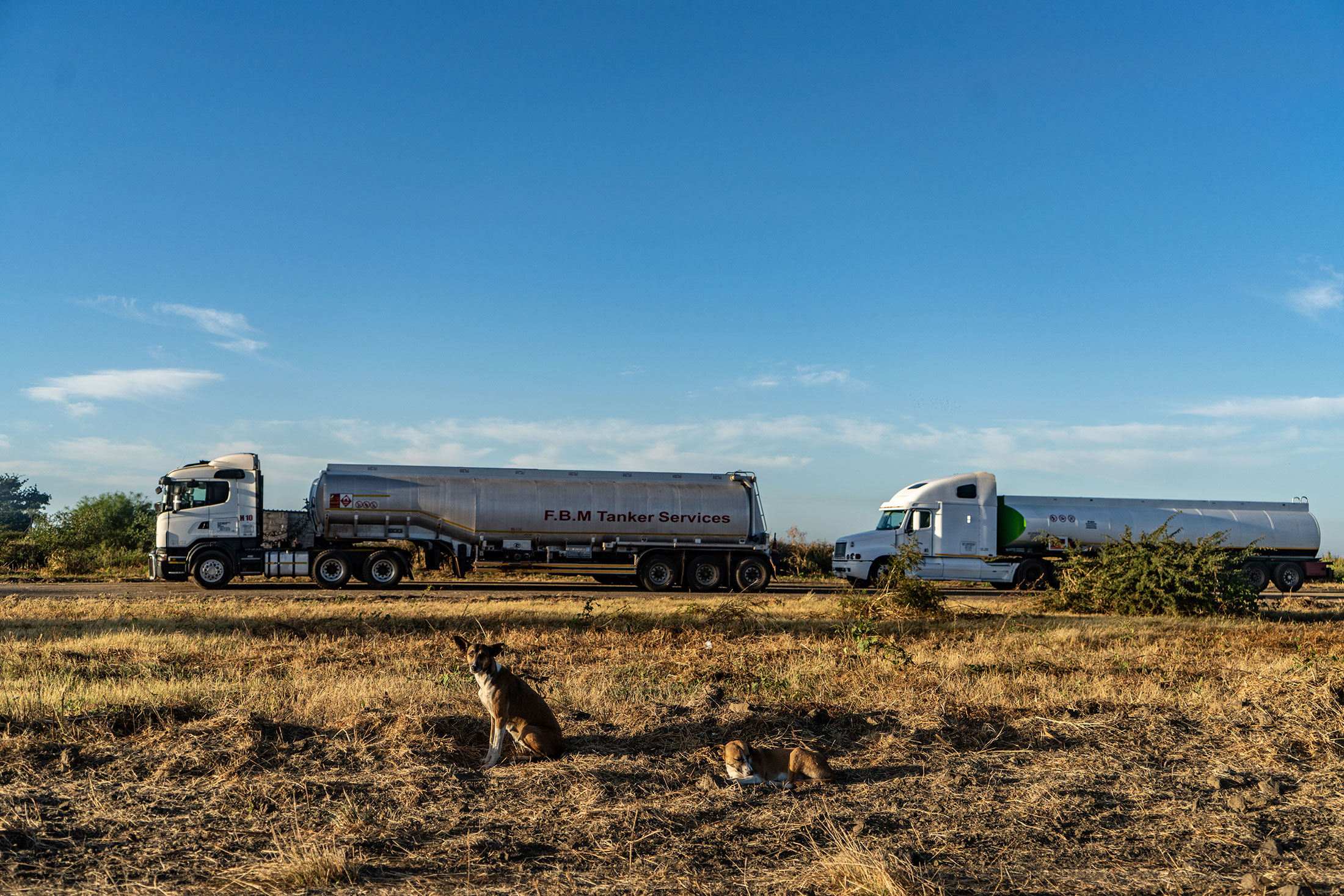 燃料槽运输卡车在乙醇工厂外排队。该项目每年将津巴布韦的燃油进口支出减少约4000万美元。这大约是政府2019年进口燃油预算的十分之一。摄影师:Zinyange Auntony