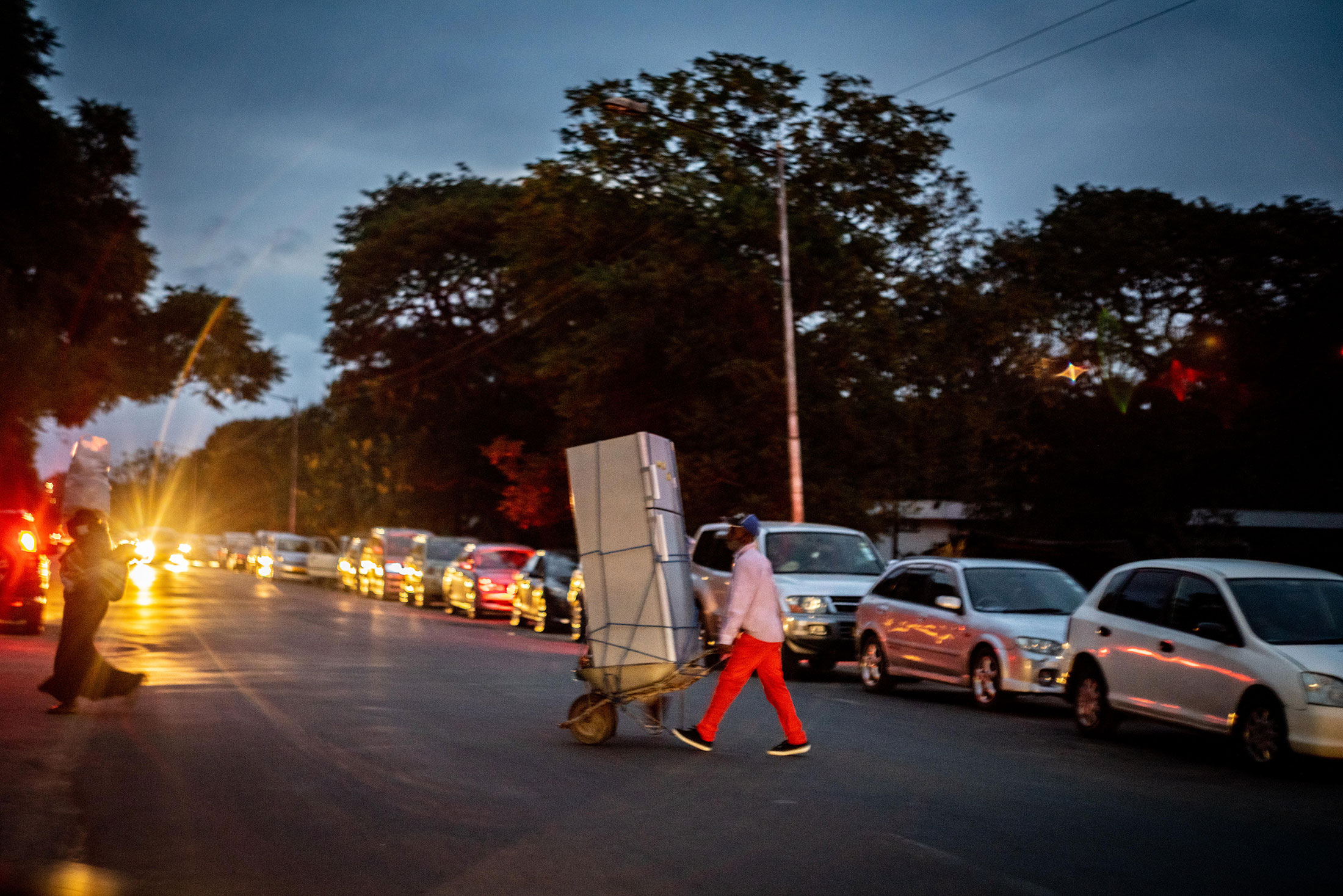 在津巴布韦布拉瓦约市区,司机们排队加油。2019年燃油危机的高峰期,政府打击抗议反对130%涨价的行动导致数百人被捕,17人死亡。摄影师:Zinyange Auntony