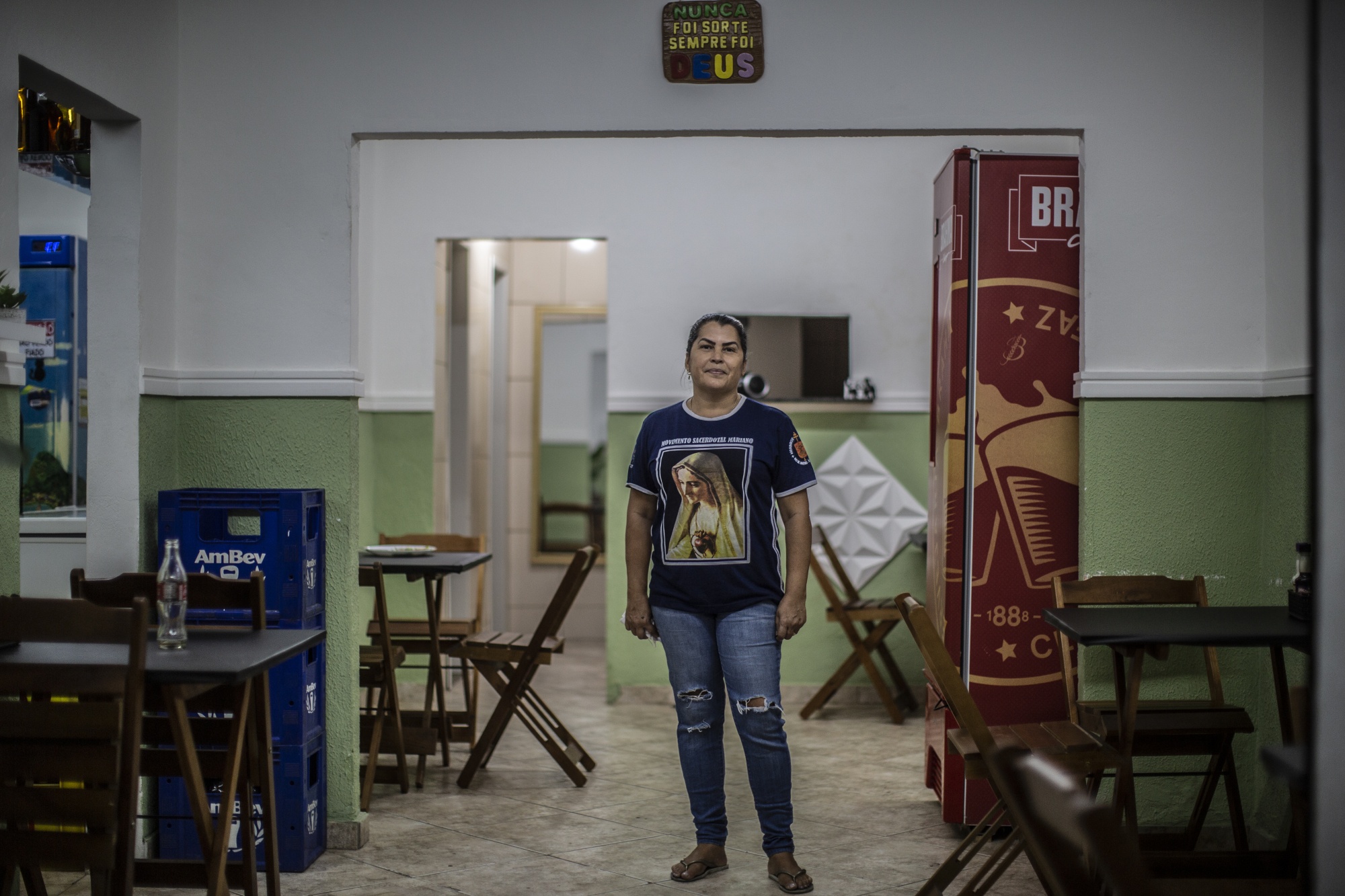 这就是玛丽·西莱娜押注的。五月,她在康塞桥岛开了一家酒吧和餐厅,以利用石油港区的复苏。最近的一个星期二,巴西乡村音乐Sertanejo从扬声器中传出,西莱娜在忙碌的午餐高峰期后喘口气。街对面,两名来自一个石油管道工厂的工人,仍穿着他们的蓝色防护连体服和头盔,在一家面包店付钱买面包。