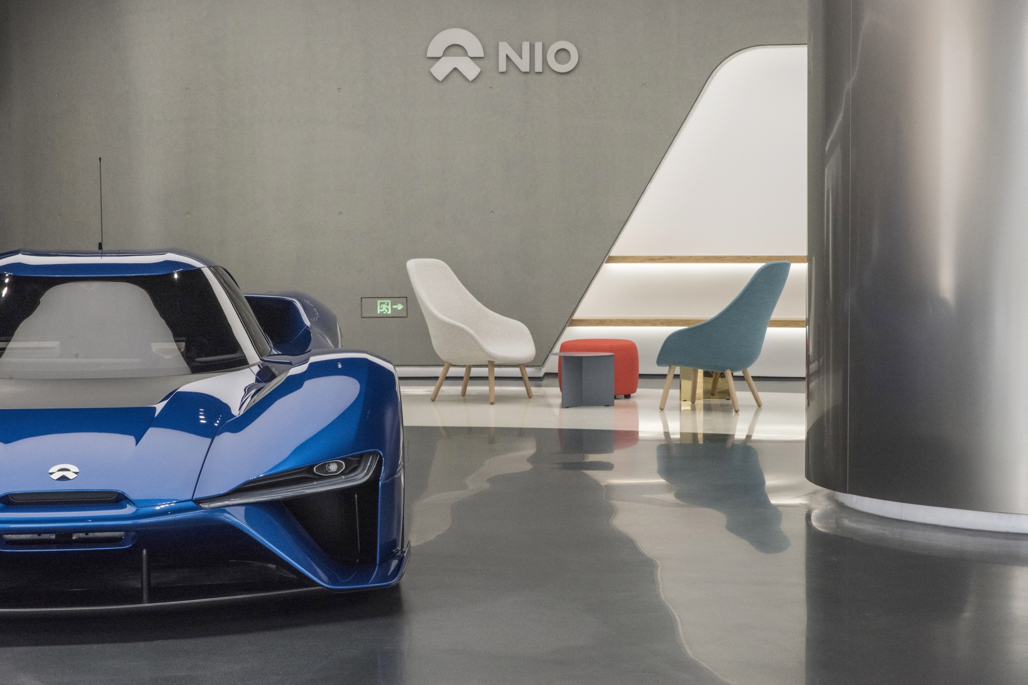 一辆蔚来EP9自动驾驶电动汽车在中国北京展出。