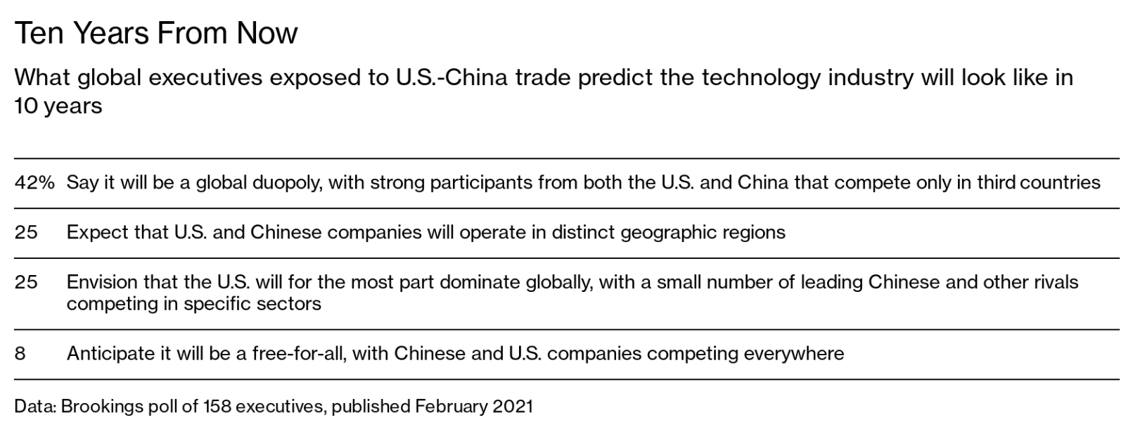 与此同时,与美国的经济对抗也助长了全球科技格局分化的预期。