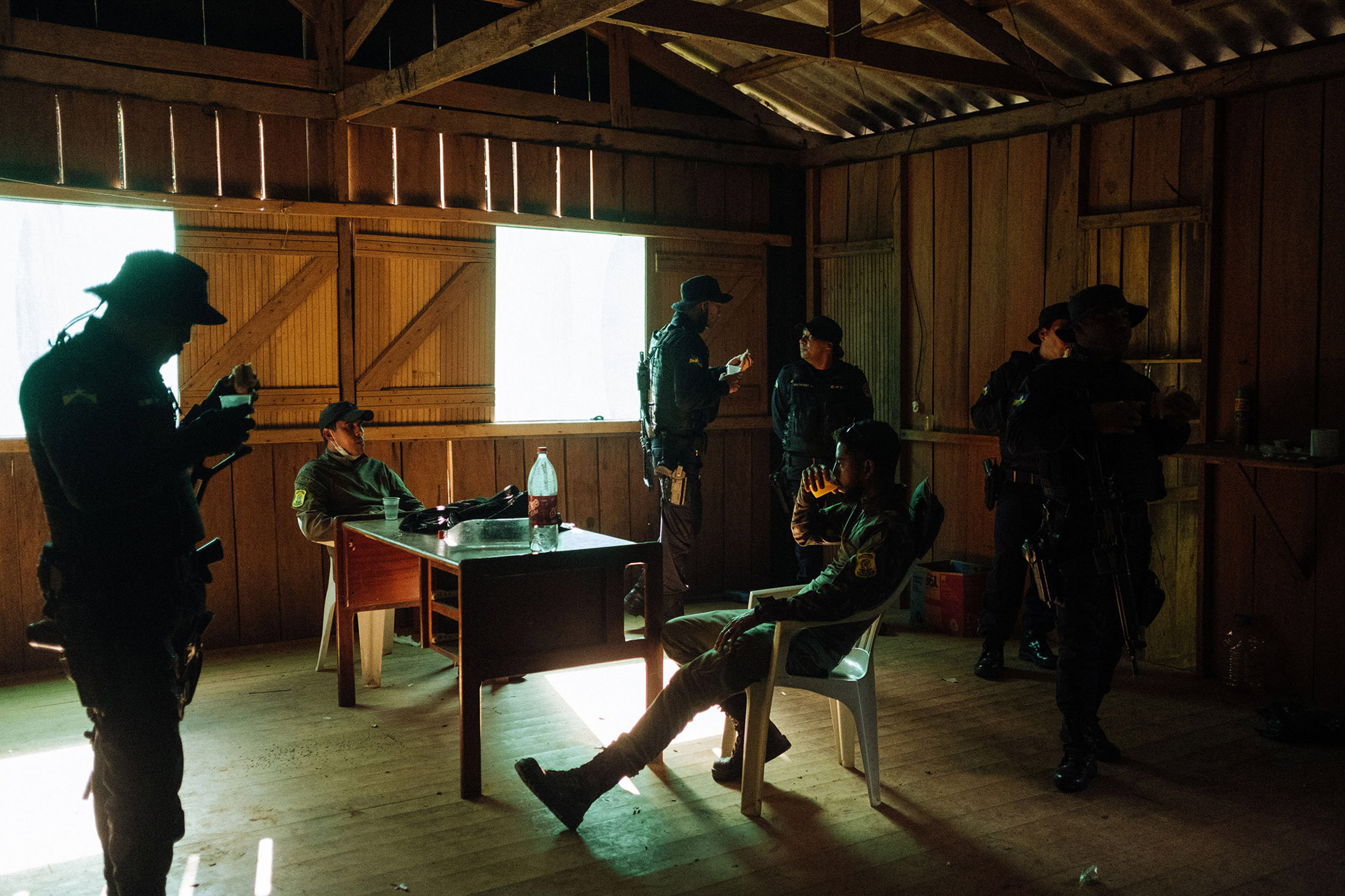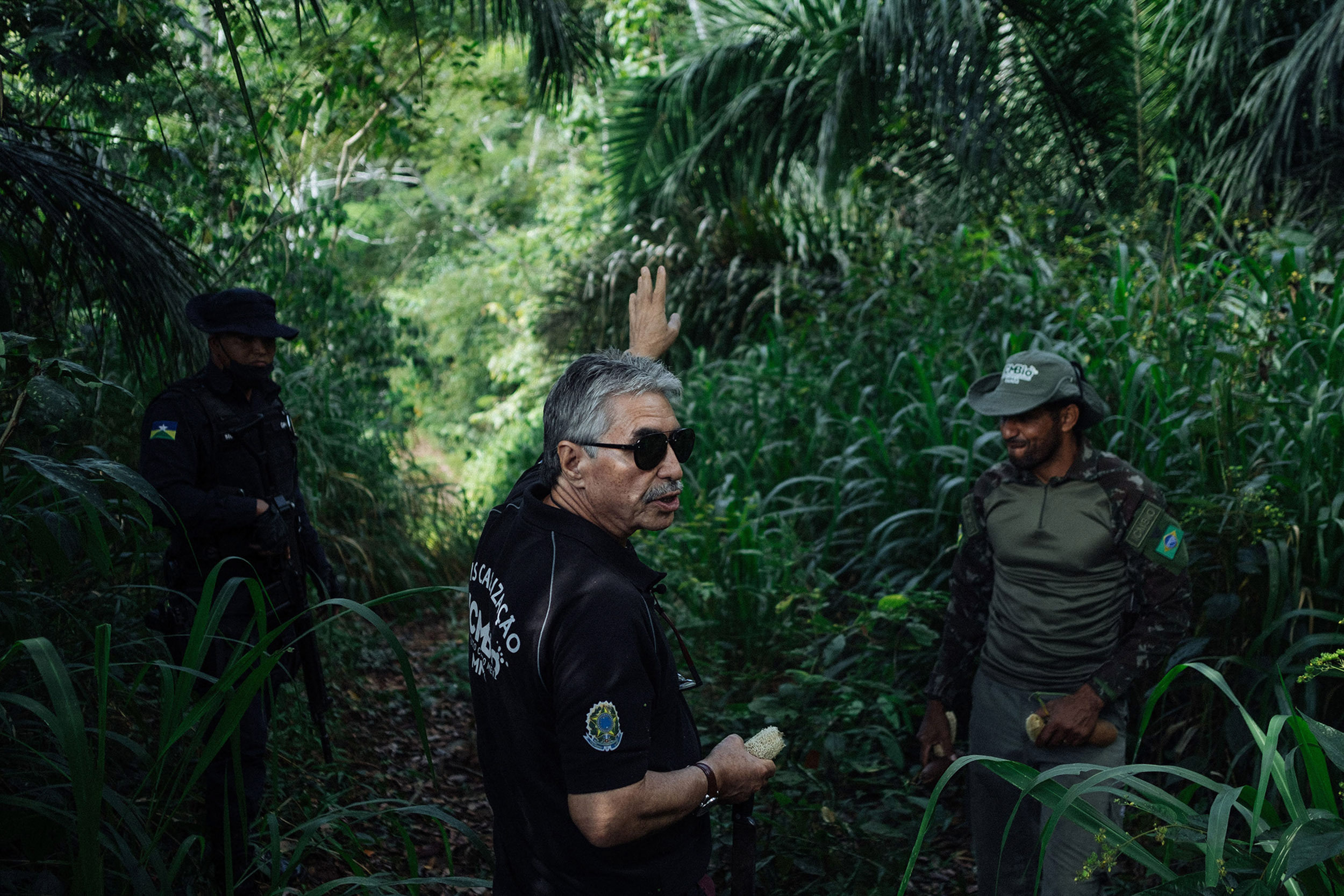 卡洛斯·兰赫尔·达·席尔瓦(Carlos Rangel da Silva)徒步进入朗多尼亚州中部的帕卡斯诺沃斯国家公园,抛下了腰部高的草地和灼热的热带气候,走进了雨林树冠的凉爽阴影。突然间,他停下来,用砍刀指着前方的某物。他带领的八名武装警察和三名公园护林员停下来,等待他的暗示。他指向一个轻微踩踏的草地区域,以及更远处红土上的一条微弱足迹。“一辆摩托车,”他说。“可能是有人在砍伐木材或者在侦察这个地区。”领头的护林员离开去查看,两名警察跟在后面,他们手持突击步枪。
