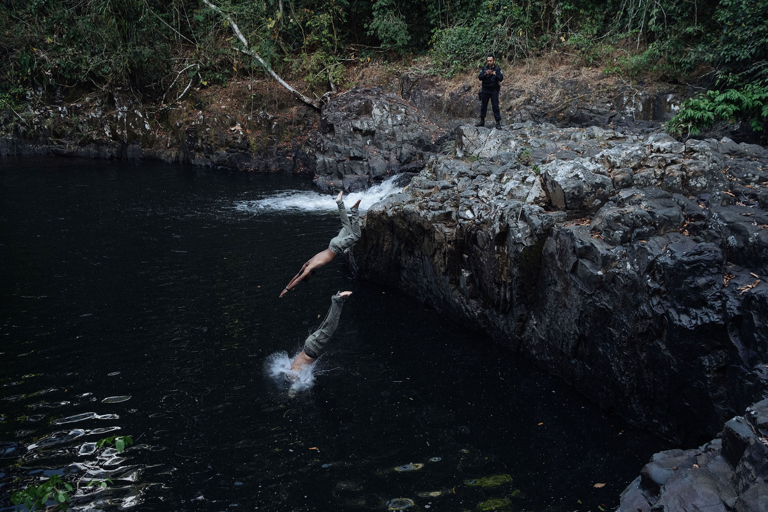 在炽热的阳光下,几名手持对讲机的守卫躲在两间棚屋里。两间棚屋之间悬着一根绳子,形成了通往Jacundá国家森林的临时大门,这是一个占地22万公顷的保护区,已经成为土地争夺战的焦点。绳子的那一边,一条土路蜿蜒进入一个狭窄的山谷,在那里,一条河在用巨大原木切割的石板建造的坚固桥下蜿蜒。孩子们从桥上跳入水中,而两名妇女则用绿色塑料网捕鱼。另外六个人在几米下游洗衣服。小径又爬回到一个名为Terra Prometida或应许之地的营地,那里有200个家庭在受保护的丛林内定居。