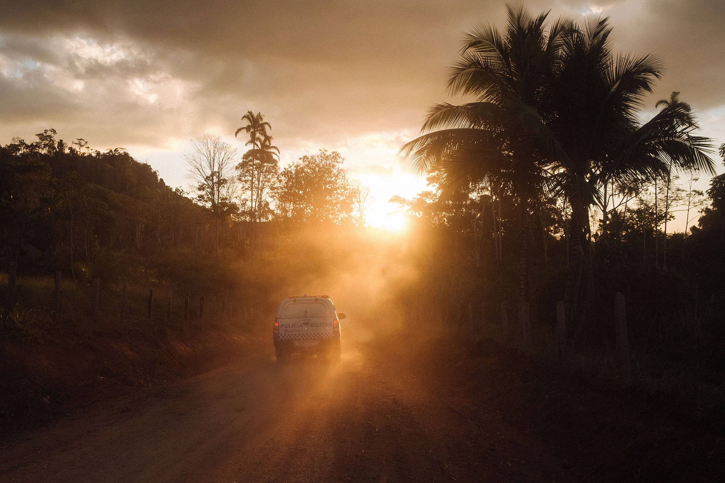 帕卡斯诺沃内的护林员和警察。摄影师:拉里莎·扎丹为彭博商业周刊拍摄兰格尔组织了一些由志愿者初级警官组成的警察巡逻队,他们为了每天额外赚取180雷亚尔而自愿加入。每次他们出发,都会受到威胁和恐吓。“从现在开始,将会是火与钢的对抗,”凯罗斯在一条被引用在法庭文件中的语音消息中警告道。“从现在开始,你们将尊重我们,否则你们将承受后果。”沿着坎普诺沃通往非法伐木者活动地点的崎岖和被封锁的道路行驶20公里需要12个小时,一旦到达那里,这伙人就很容易逃入茂密的丛林。有一次,兰格尔和他的团队设法逮捕了一个人后,凯罗斯和另外大约30人在他们返回坎普诺沃的路上伏击了他们。他们带着汽油弹包围了警车,威胁说如果不把他们的人还回来就把警车点燃,根据兰格尔的宣誓陈述。对峙持续了一个小时,直到兰格尔和他的首席护林员说服凯罗斯。但他们最终放弃了那名囚犯。