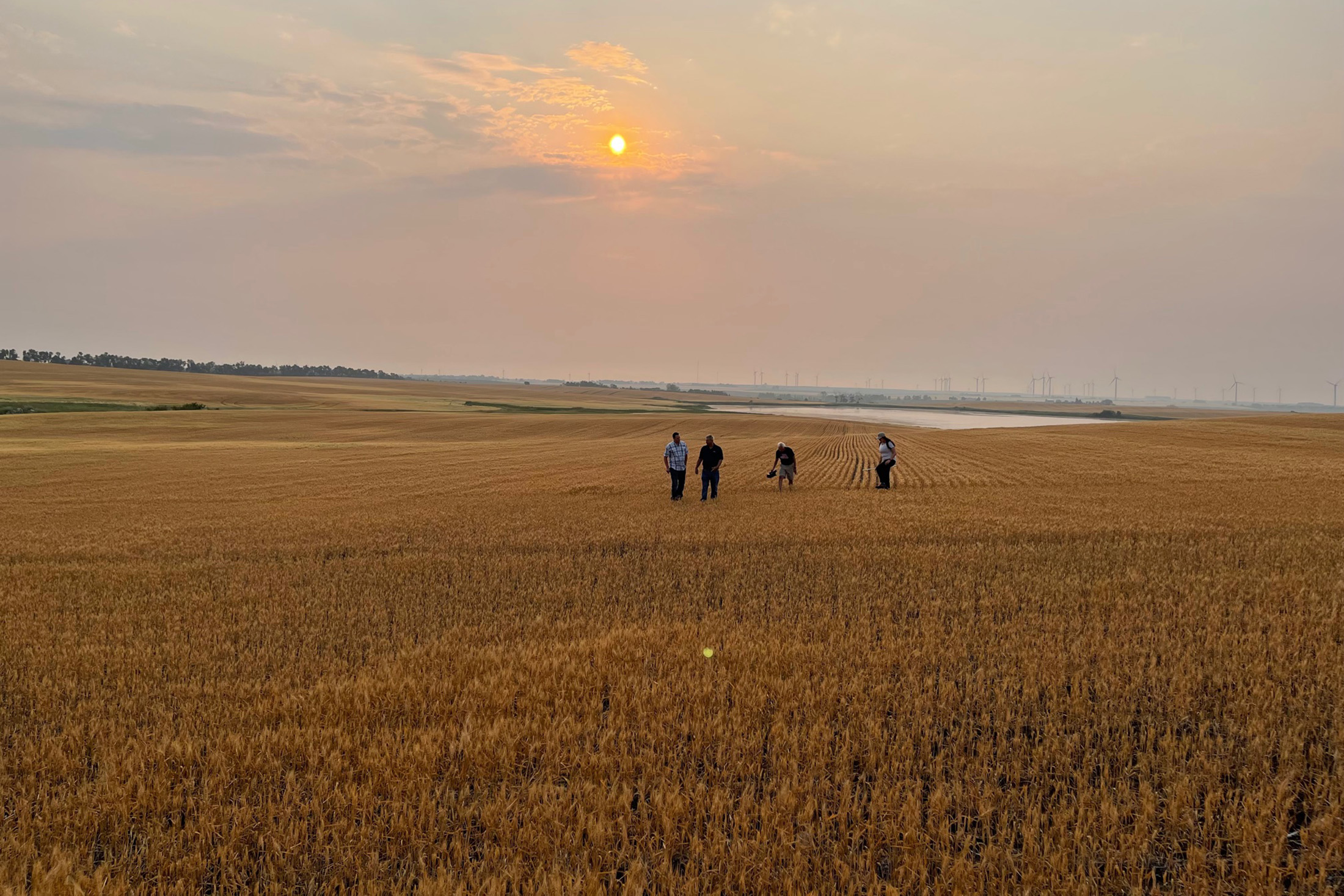北达科他州一片严重干旱和高温的春小麦作物。这些小麦平均只有10英寸高。最新的天气对食品供应的影响迹象是本周作物调查员在北达科他州考察产量潜力时得出的结论。