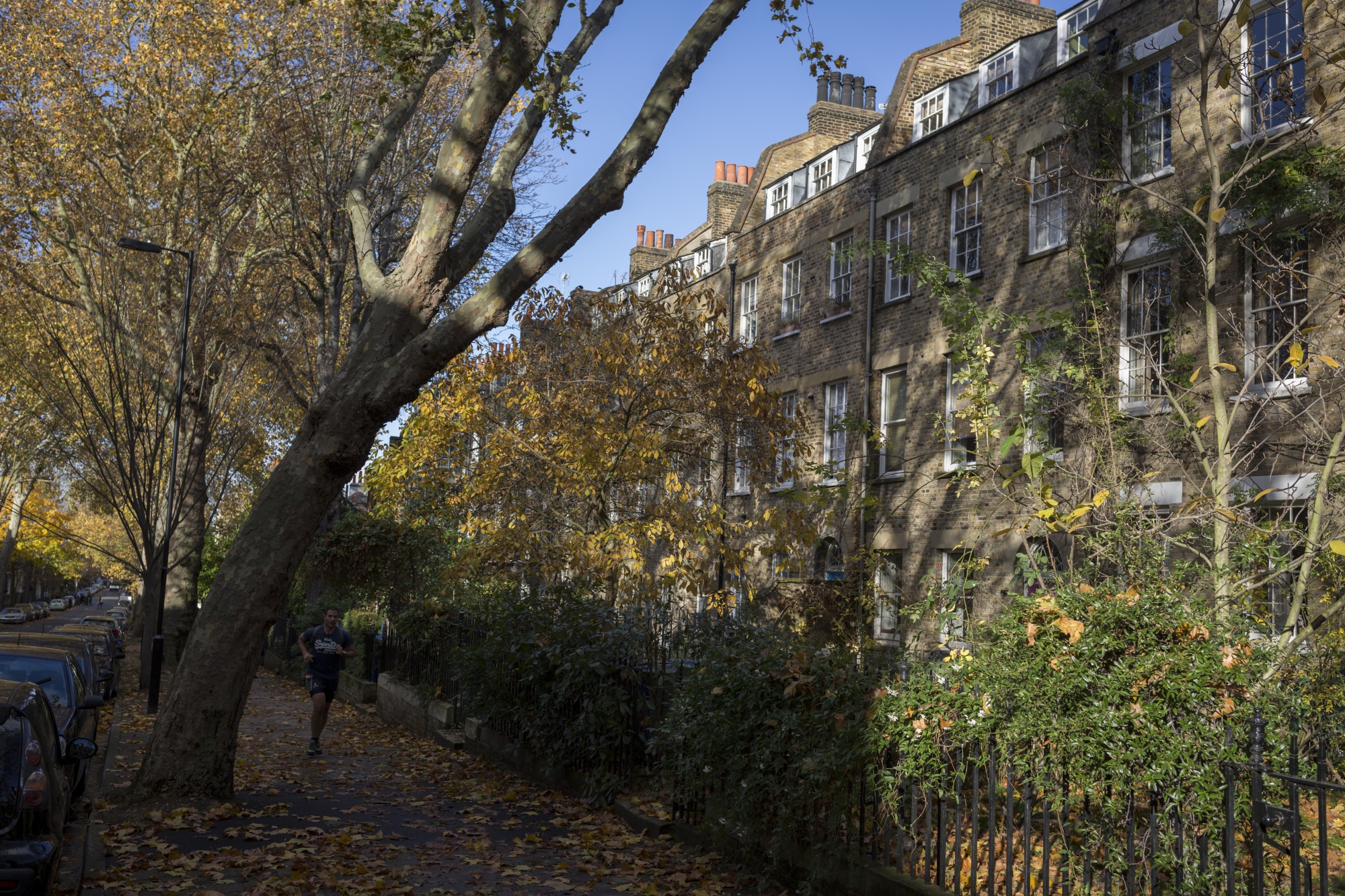 伦敦的一棵高大的悬铃木向着伦敦的历史悠久的房屋倾斜。摄影师:Richard Baker/In Pictures这就是为什么如果城市真的想要衡量他们的树木计划的成功,他们需要考虑树木的成熟度和类型。其中一个很好的方法是树冠覆盖率,这使得城市能够更好地评估不同树种的相对益处。
