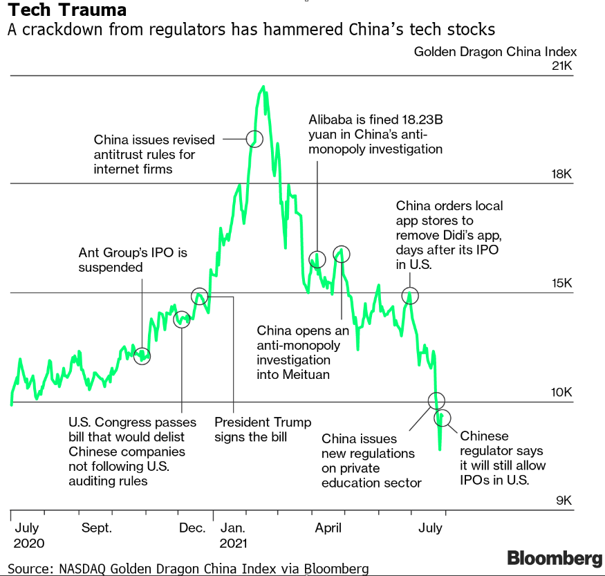 在周五的一系列行动中,中国当局召集了该国最大的科技公司进行关于数据安全的讲座,承诺加强对海外上市公司的监督,并指责网约车公司扼杀竞争。这是在对海外IPO之前进行数据安全审查的新要求、要求送餐公司支付员工生活工资、加大对高房价的限制以及打击家教公司的行动之后。综合起来,人们越来越意识到中国商业的旧规则不再适用,投资者也在猜测下一个可能成为监管目标的行业。