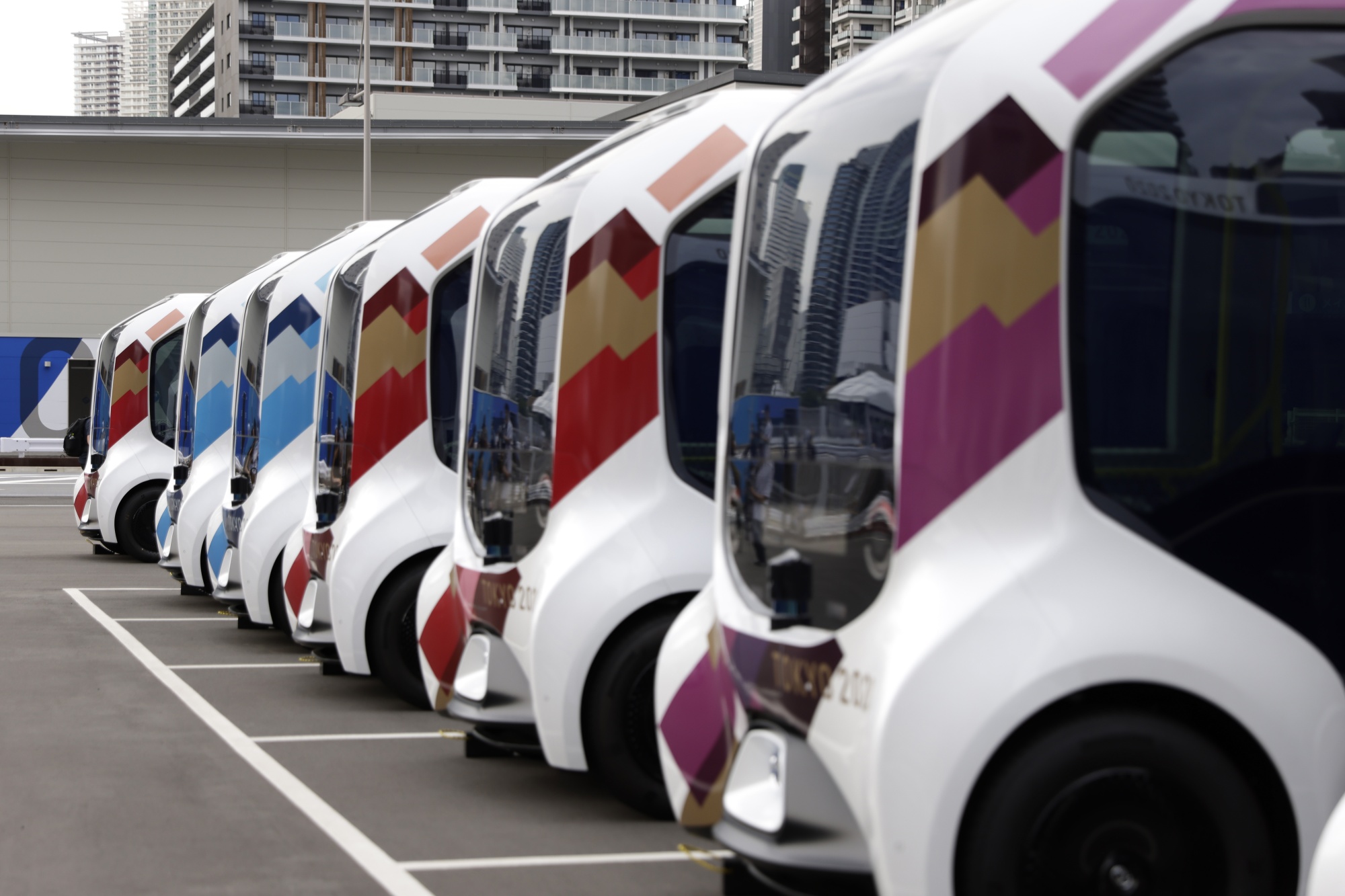 在东京湾的人工岛上,一辆自动驾驶穿梭车穿过挂满奥运会旗帜的村庄建筑。这是一个奇特的景象 - 这辆自主、电池驱动的、笨重的车辆看起来像是一个未来主义的带轮子的集装箱。上周早晨我在水对面的公园参观时碰巧看到了一辆,这是我第一次看到丰田的e-Palette车辆在行动中。它们被用来在奥运场地周围接送运动员和工作人员,在大事件前几个月可以看到它们在无声自动循环中练习无人驾驶。