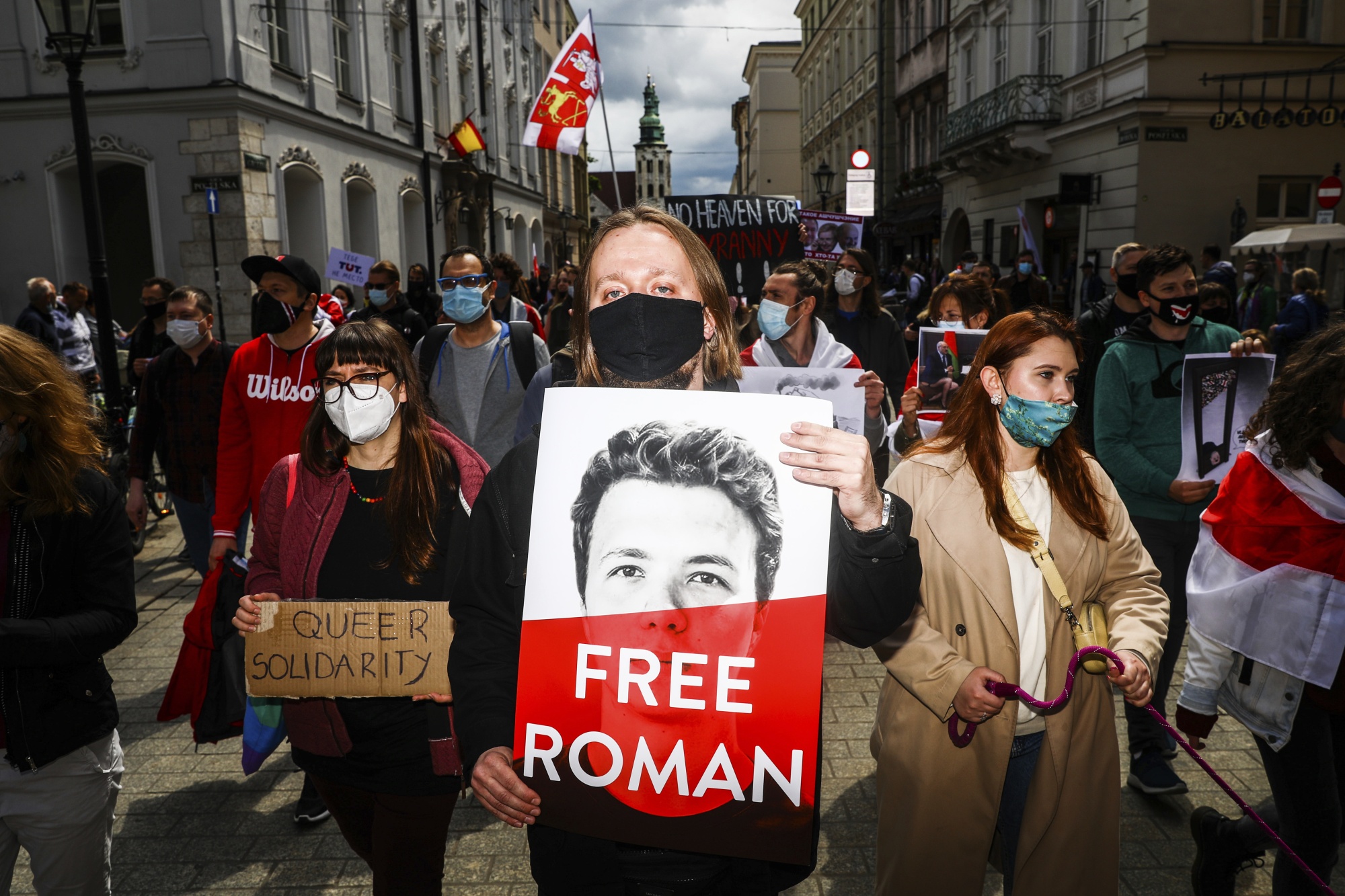 在波兰克拉科夫的一次示威活动中,展示了被拘留的白俄罗斯记者罗曼·普拉塔谢维奇的海报,日期为5月29日。摄影师:Beata Zawrzel/NurPhoto/AP Photo在土耳其,除中国外是世界上新闻记者被监禁最多的国家,两名彭博新闻社记者因涉嫌试图“破坏”经济而面临两到五年的监禁,原因是他们在2018年8月的一篇报道中提到了货币震荡。当时,里拉兑美元的价值在与美国持续数月的紧张关系中下跌了超过40%,土耳其当局将此下跌归咎于攻击货币的外国投机者。去年,该国银行监管机构扩大了操纵交易的定义,包括通过媒体传播“误导性或错误信息”对金融资产进行操纵;在这两名记者的案件中,检察官指控了36人因社交媒体评论被认为对经济和银行持批评态度。
