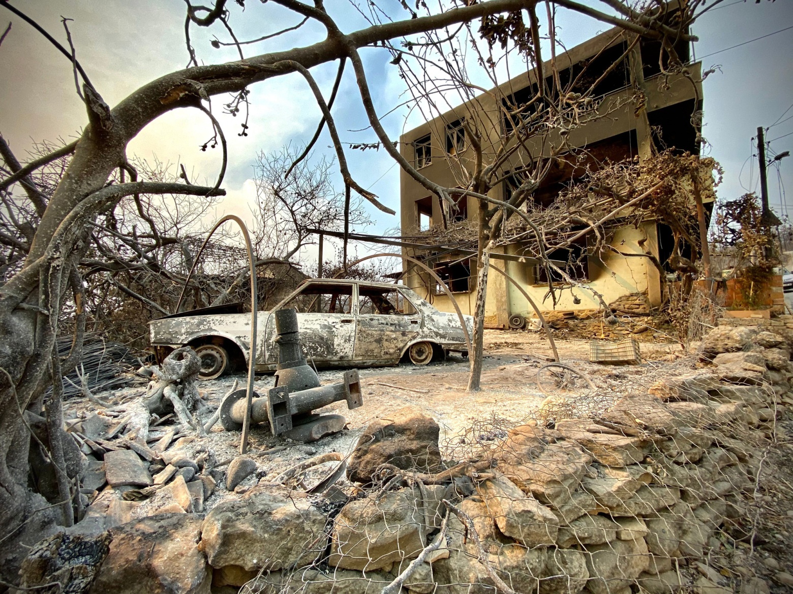 这张照片是在曼阿夫加特镇附近拍摄的,显示一座被烧毁的房屋,一场大规模的森林大火吞噬了土耳其南部海岸的地中海度假区。