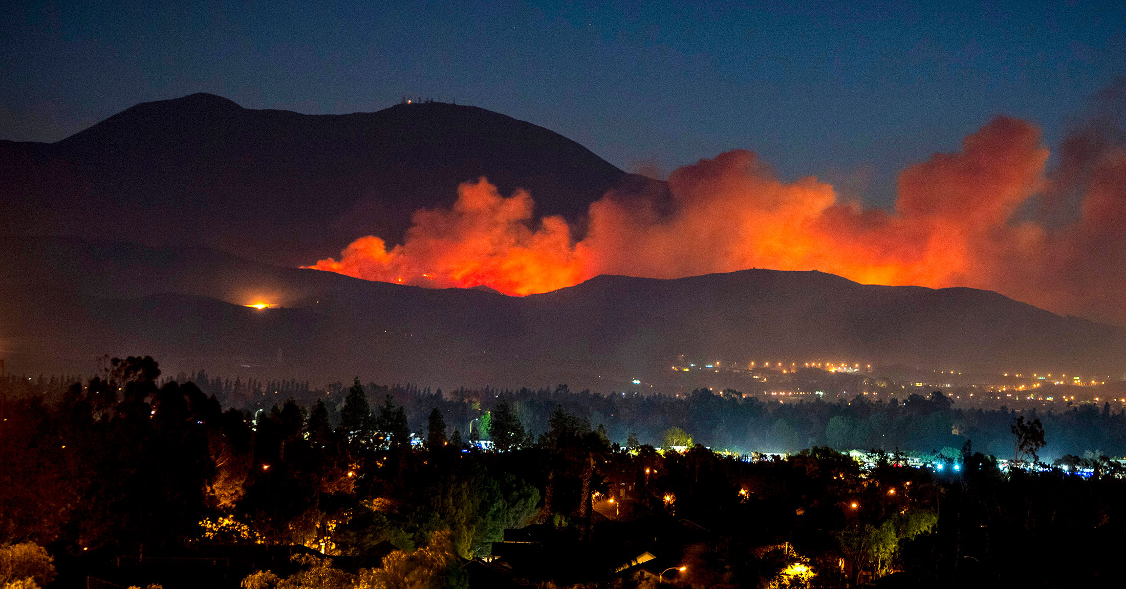 摄影师:Myung J. Chun/洛杉矶时报/Polaris火灾始于10月26日黎明前,当时一根电信线上的火花落在圣地亚哥峡谷的矮树草和草木间。随着白天变得更热,风变得更强,大火横扫加利福尼亚州东部橙县数百英亩的土地,烟雾弥漫到15英里外的海岸。火势加剧,向西蔓延至尔湾和雷克斯湖等居民区;两名消防员被严重烧伤,不得不被引发昏迷,最终在医院度过数月。郡消防局长布莱恩·芬内西帮助警方疏散了超过75,000名居民,有时还亲自使用灭火器扑灭火点。