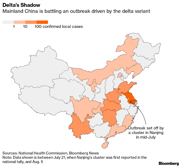 中国正在夏季假期期间实施内部旅行和活动限制,因为感染率重新回升到像武汉和北京这样的地方,这导致经济增长预测的下调。周五,中国的病例数跃升至101例,达到了六个月来的最高水平,德尔塔变种蔓延到了占全国国内生产总值38%的地区。