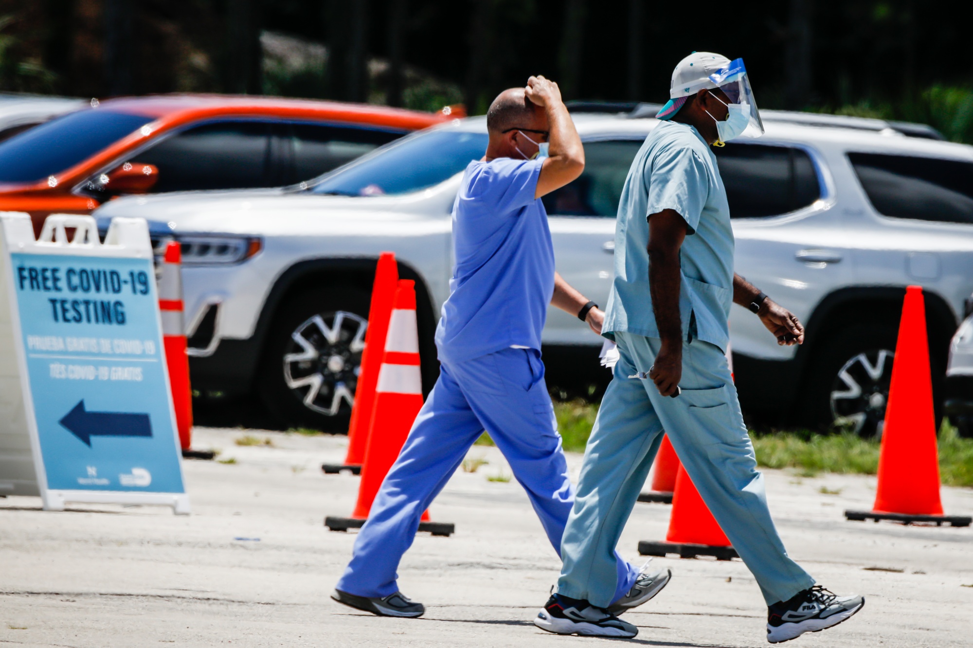 迈阿密的Covid-19检测点在换班时的医护人员。佛罗里达州州长罗恩·德桑蒂斯拒绝了白宫的请求,要求他通过口罩强制令和其他预防措施保护佛罗里达人民。摄影师:Eva Marie Uzcategui/Bloomberg美国参议院正在朝着周末投票总统乔·拜登的5500亿美元基础设施立法迈进,此前周四晚间通过该法案的尝试被因加密货币监管问题而受挫。
