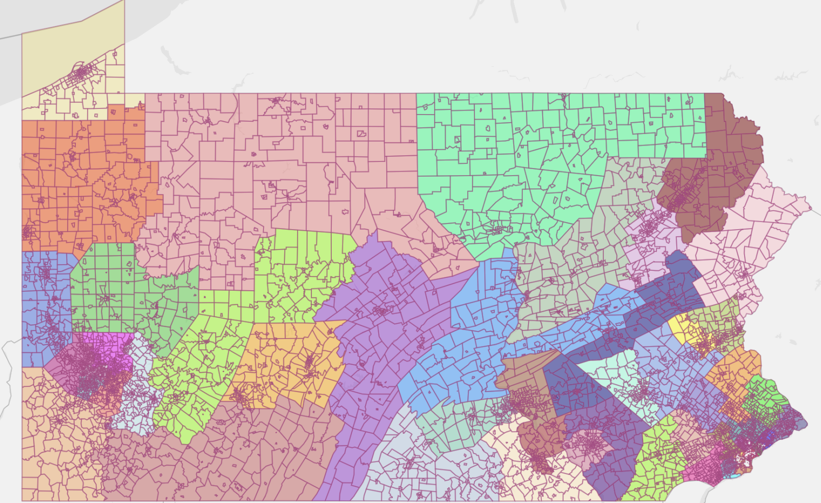 迈克尔·瓦克森伯格(Michael Waxenberg)自制的宾夕法尼亚州参议院选区地图。来自Dave’s Redistricting的截图事实上,所有这些地图和证词都是为了提升美国居民的声音,他们的代表权在通常是不透明、闭门的程序中岌岌可危。如果组织最终因选区边界不公平而起诉各州,这些由社区制作的地图也可能被用于法律战斗。