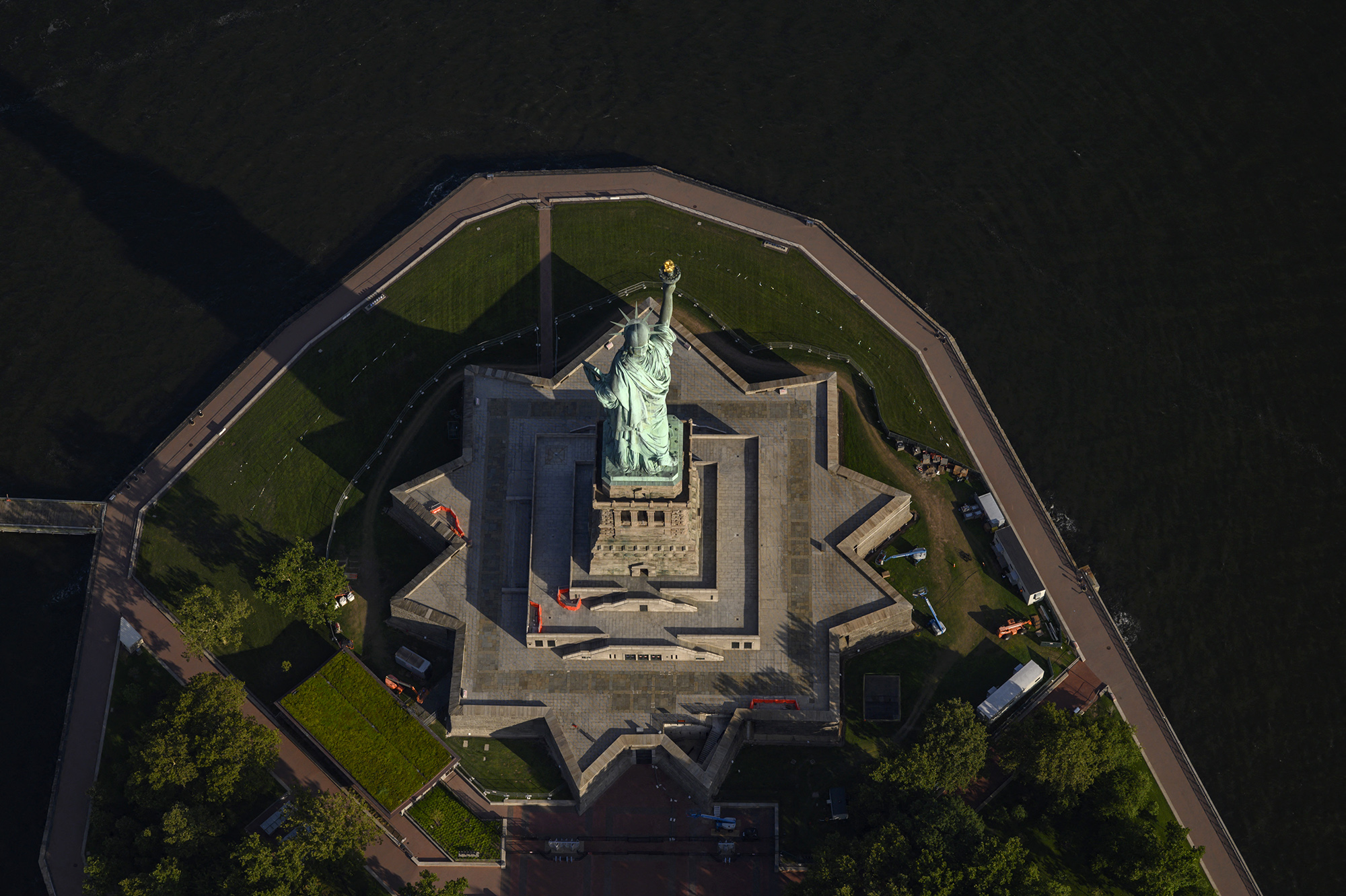 一张航拍照片显示了2021年8月5日的纽约自由女神像。摄影师:Ed Jones/AFP/Getty Images纽约的自由岛,人口为0,已成为美国人口普查中不太可能的争夺中心。