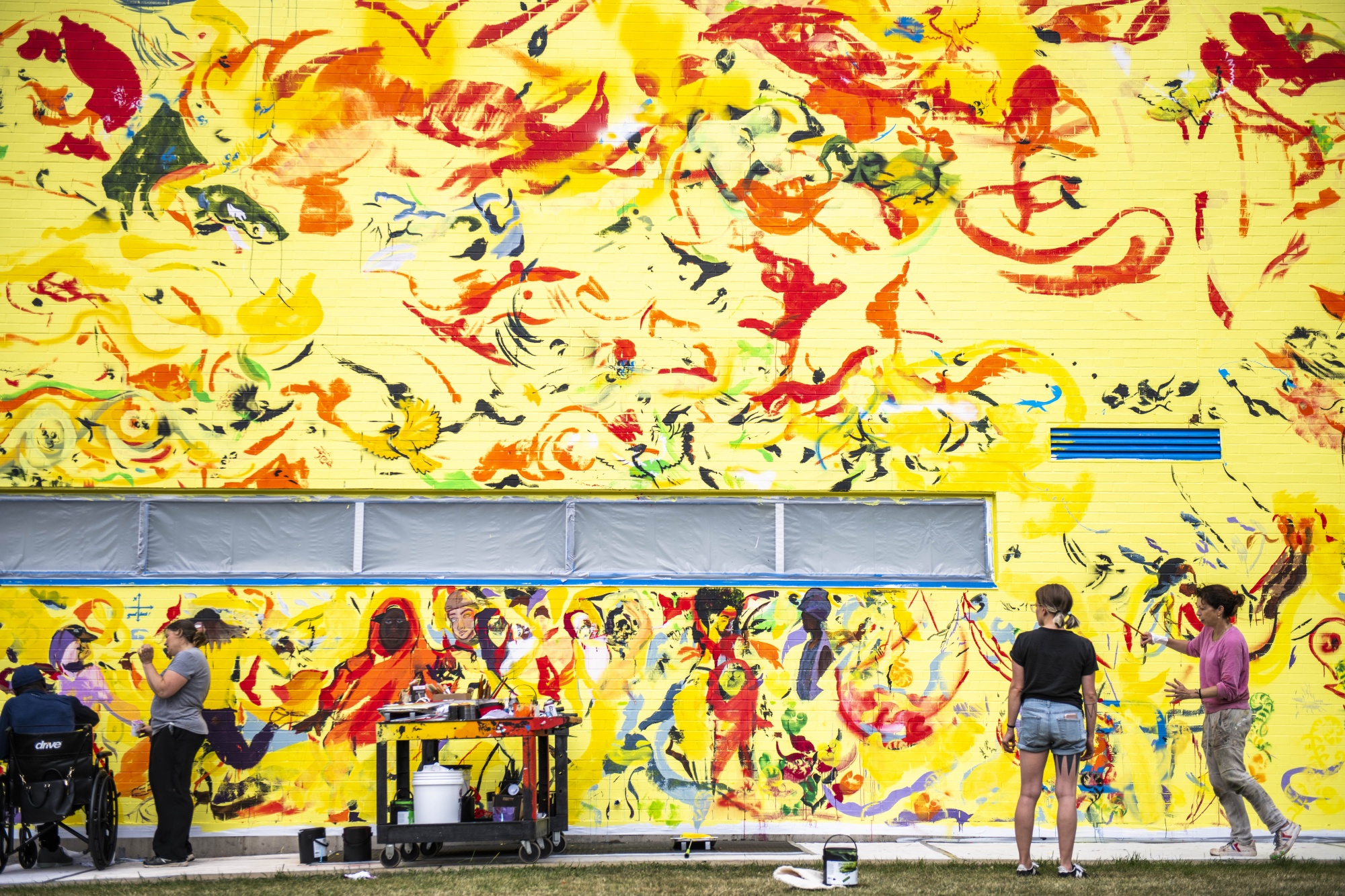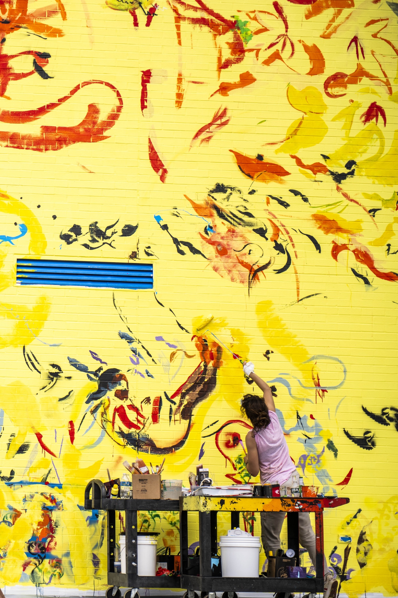 这位艺术家在20世纪90年代以其富有表现力和色彩丰富的绘画而闻名,常常以狂热的抽象表现主义风格描绘情色、享乐场景。她唯一一次访问布法罗是在2001年,当时奥尔布赖特-诺克斯美术馆展出了她1999年的作品“新娘之父”,并展示了其最新收购。从那时起,布朗一直享受着在更大尺度上工作的乐趣;壁画是迫在眉睫的。“我经常希望[我的作品]能更公开一些,”她说,“所以从某种意义上说,这对我来说是一个显而易见的下一步。”