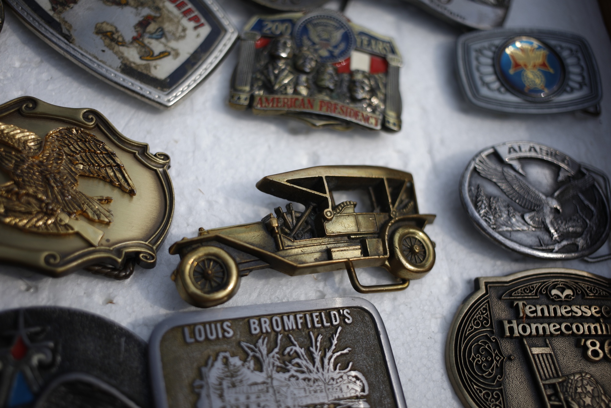 密歇根州哈德森路边旧货拍卖会上展示的皮带扣。摄影师:卢克·夏雷特/彭博社喜欢收到晚间简报*?订阅Bloomberg.com,获取无限访问权,阅读可信赖的数据驱动新闻,并从独家订阅者专属新闻简报中获得专家分析*