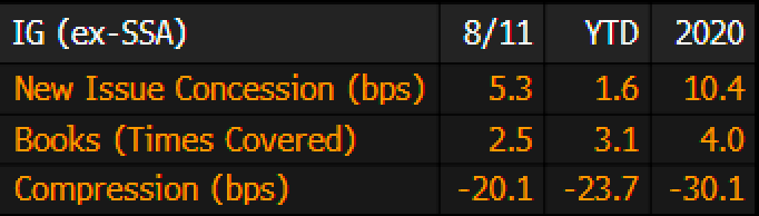 这令人惊讶的原因有几个。首先,过去一年由于美联储的安抚之手,发行活动尤为繁忙,使得清除任何规模和范围障碍变得更加困难。其次,我们正处于夏季的中旬 -- 八月通常是债券交易员感到相当无聊的时候。