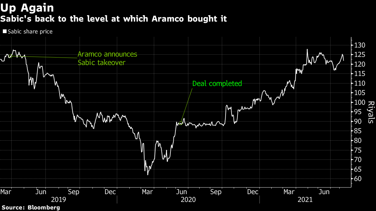 沙特阿美收购化工公司Sabic,导致其债务水平突破自我设定的借贷目标,现在显示出迹象表明正在取得回报,因为塑料、油漆和包装价格飙升。上周,Sabic报告了近十年来最高的季度净收入。