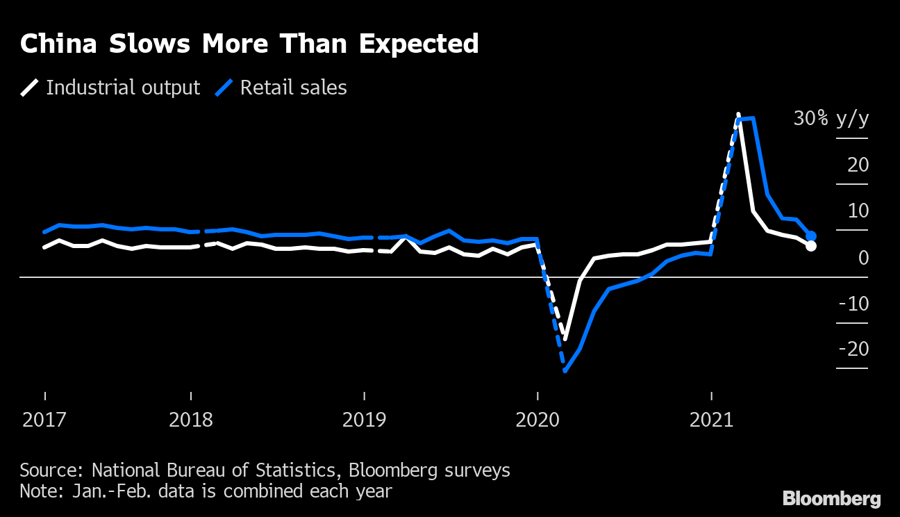 中国的经济活动**在7月份放缓超出预期,新的病毒爆发给已经受到洪水和全球需求疲软打击的复苏增加了新风险。这一放缓发生在美国8月初消费者信心数据下降至近十年来最低水平之前。