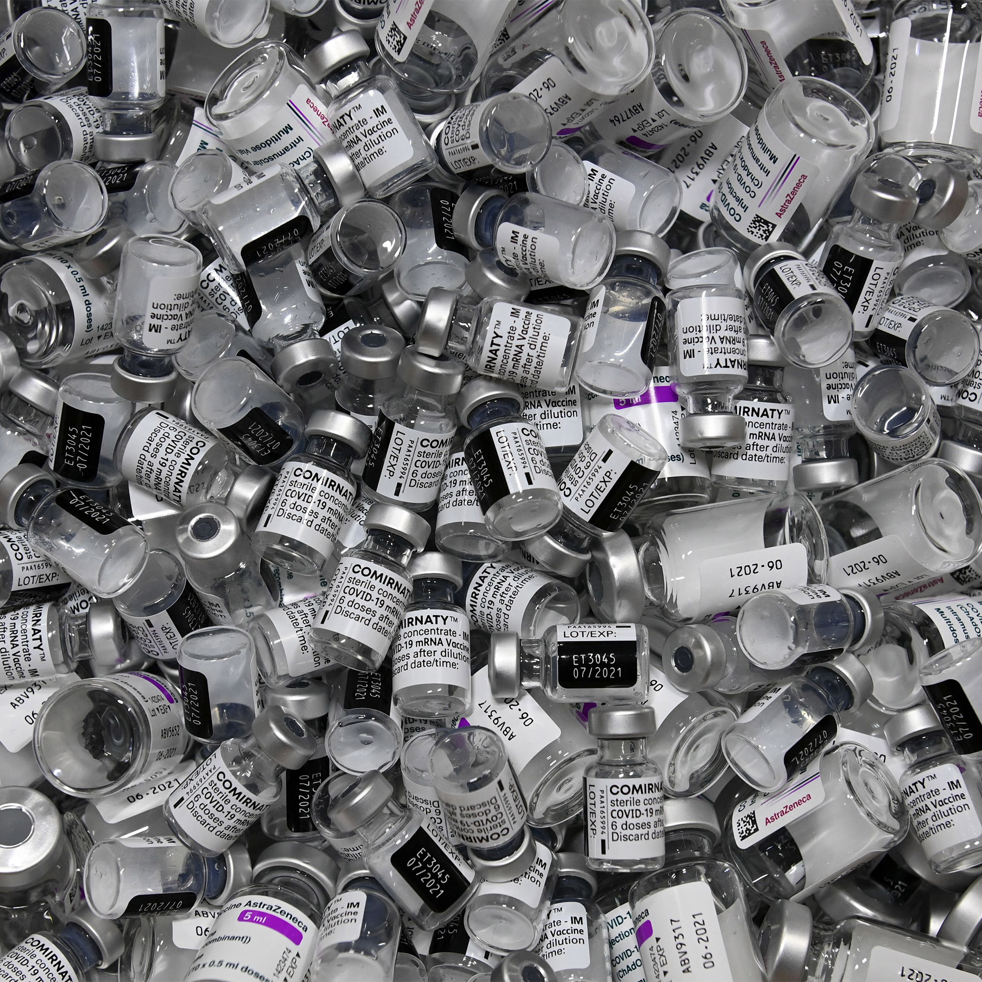 辉瑞-联发科和阿斯利康针对Covid-19的疫苗空瓶。