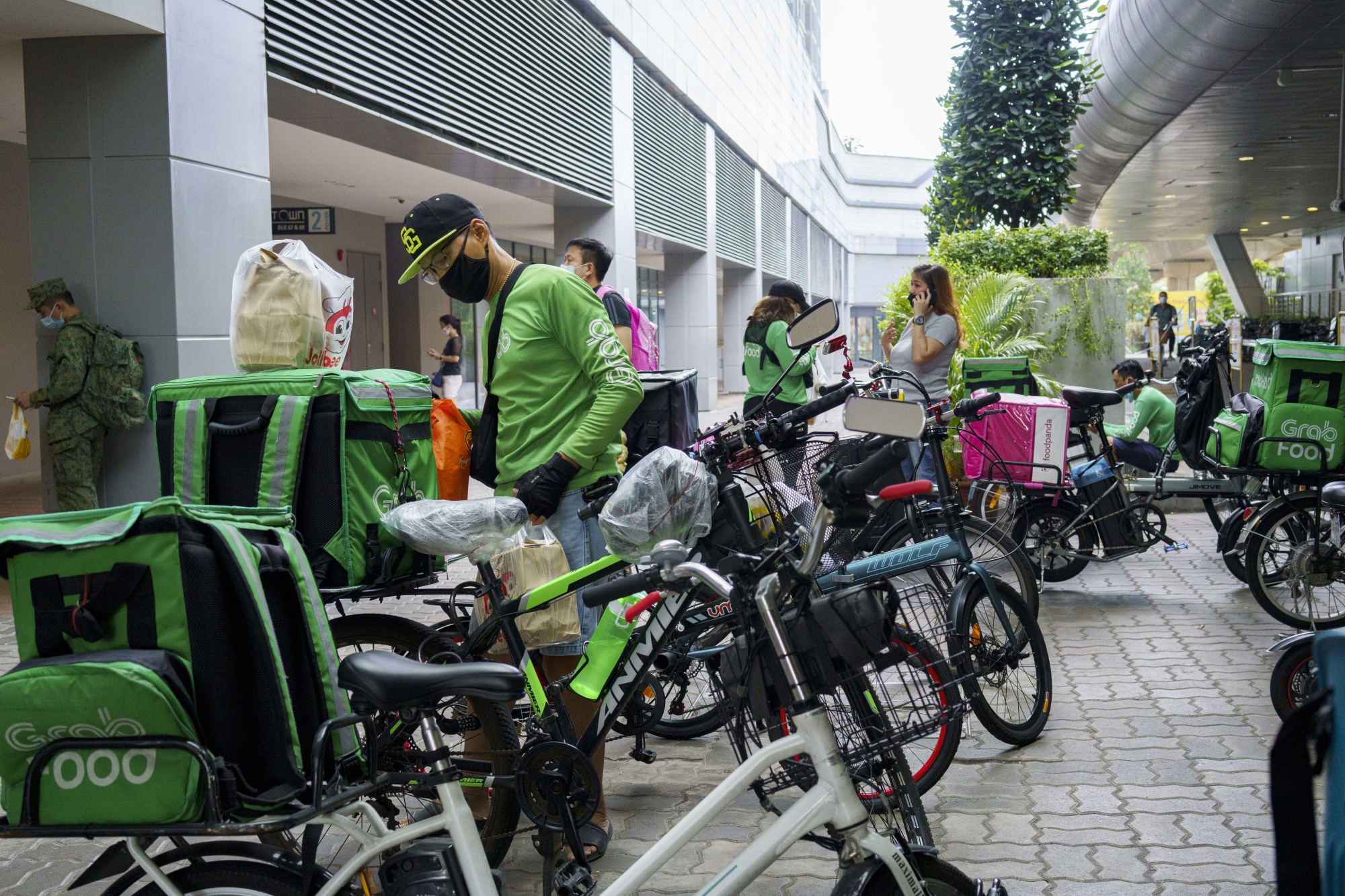 新加坡GrabFood的送餐员。摄影师:Ore Huiying/Bloomberg根据BNEF最新数据,全球数字网约车服务用户数量达到了惊人的13亿,这对投资者来说是一个引人注目的数字。