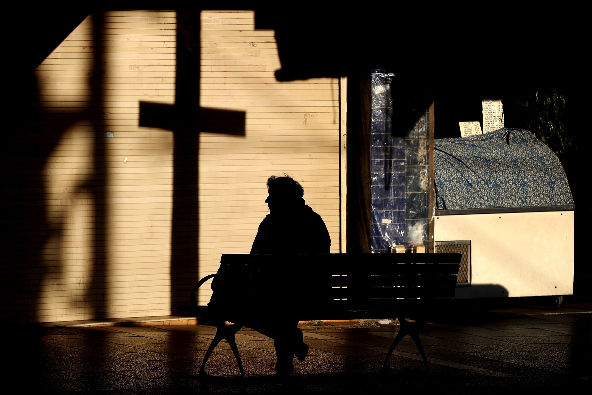 周四,澳大利亚悉尼一家关闭的商店附近的购物者。