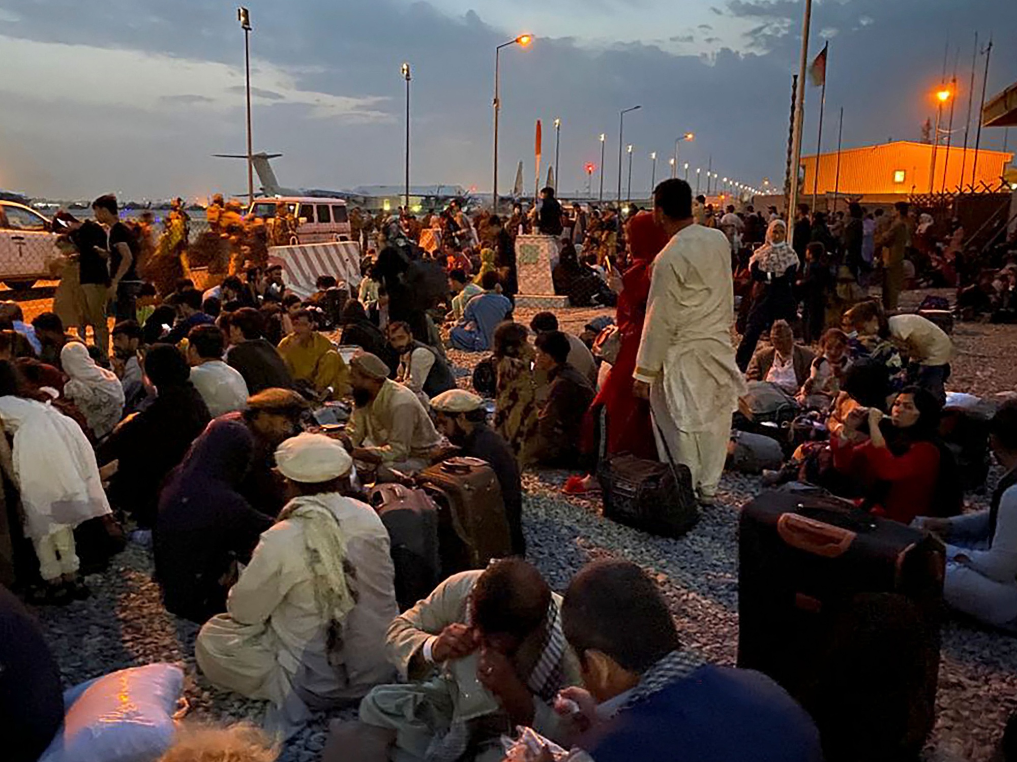 阿富汗人等待登上一架美国军用飞机,时间是8月19日,地点是喀布尔机场。摄影师:Shakib Rahmani/AFP/Getty Images点击 这里 关注彭博政治在Facebook上的动态,并告诉我们我们做得如何或者我们错过了什么,发送邮件至 [email protected]*。*
