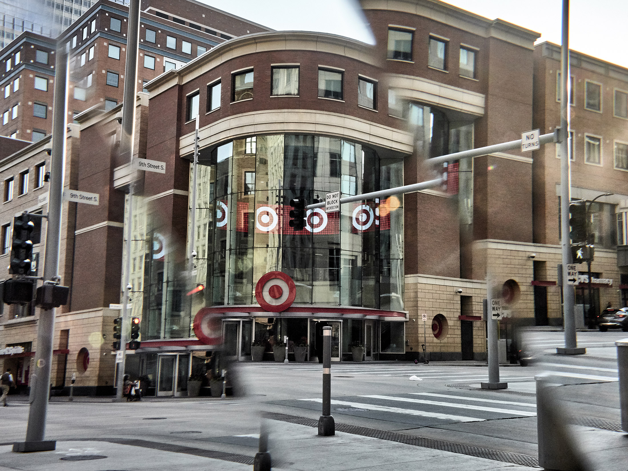 Target的展示店位于尼古莱特大道。摄影师:彭博商业周刊的西蒙娜·吕克Target在上世纪90年代开始向内城扩张。当它于2001年抵达明尼阿波利斯市中心时,一场复兴已经在进行中。警察局成功地通过当时流行的“破窗理论”来减少暴力犯罪,该理论主张打击小罪行以防止更严重的犯罪。该市已经对尼古莱特大道进行了改造,这是一个备受青睐的步行购物区,增加了奥地利松树和花岗岩铺路。在大道上一家庞大的新Target店,有一个高耸的、玻璃包裹的靶心,宣告了该公司的首要地位。