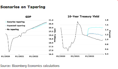 一切都取决于时机。以及沟通。这是彭博经济学对美联储缩减购债的评价Björn van Roye和Tom Orlik在周五美联储主席杰罗姆·鲍威尔长期期待的虚拟杰克逊霍尔舞台上发表讲话之前的看法。如果美联储在条件不合适时意外宣布缩减购债,活动和资产价格将受到打击,他们表示。到2022年底,美国国内生产总值将下降约0.7%,而10年期收益率将比顺畅的缩减情景高出约30个基点。