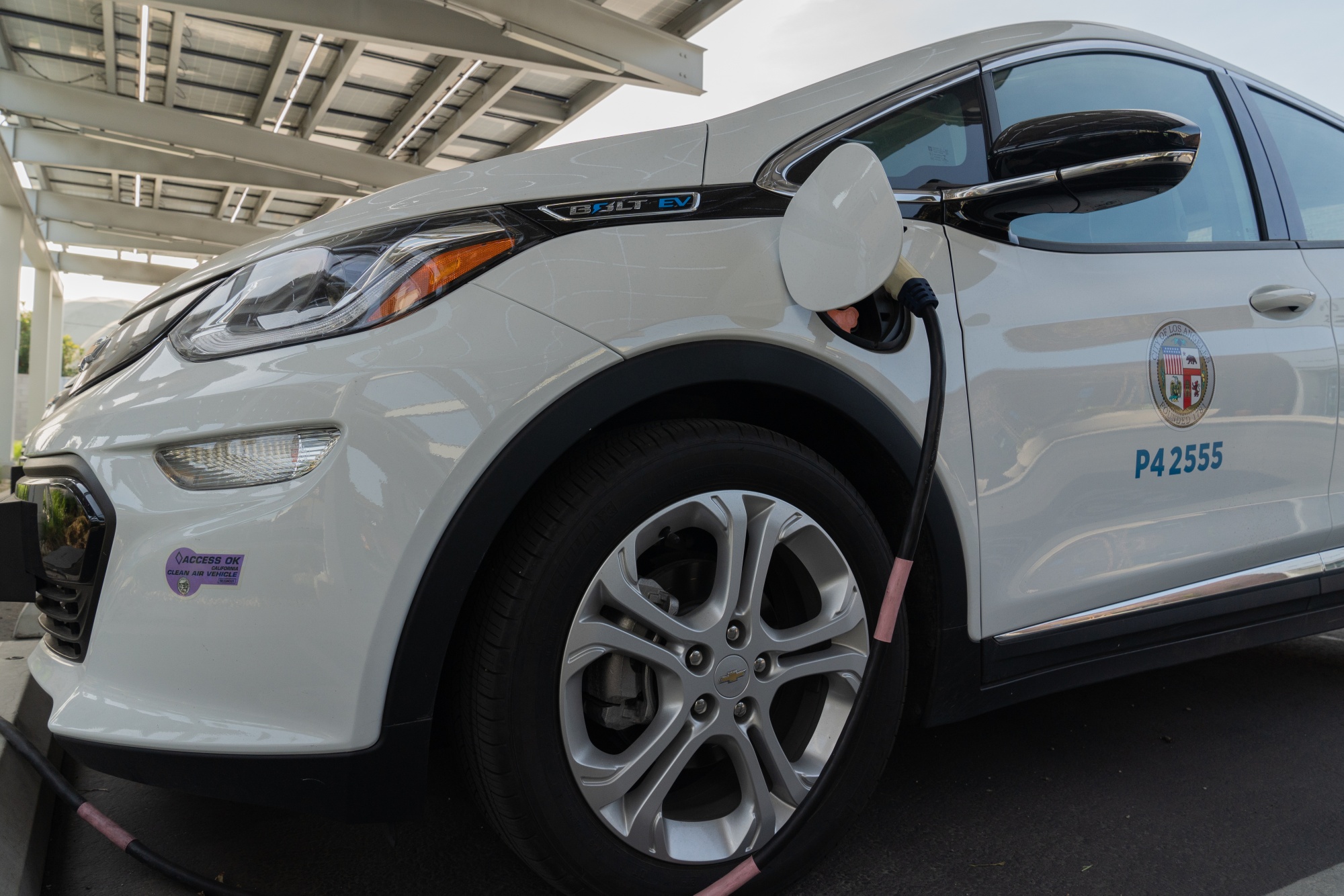 洛杉矶市拥有的雪佛兰Bolt电动汽车。摄影师:Bing Guan/Bloomberg这些电池组的组成在拆解不同的电动汽车时有很大的差异。特斯拉的Model S有超过7,000个电池;Bolt有288个。还有不同的化学成分和形态。特斯拉自己主要使用松下生产的锂离子圆柱形电池,但现在也在中国生产的一些型号中使用了更薄更轻的锂铁磷酸盐阴极的棱柱形电池。
