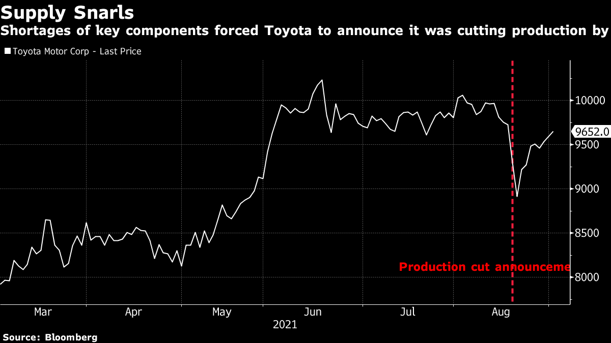 河内附近的一个工厂出现了一例新冠病例,这足以给世界最大的汽车制造商丰田带来巨大问题,丰田是“及时制造”生产方式的典范。该公司依赖越南的供应商生产许多汽车零部件,包括连接各种零部件的线束。正如彭博报道的那样,河内工厂的中断与马来西亚的疫情爆发相结合,导致半导体生产受阻,最终引发了足以迫使丰田上个月宣布削减产量40%的连锁效应。