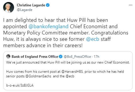 英格兰银行任命了Huw Pill,一位曾在高盛和欧洲央行任职、现在在哈佛商学院工作的人,作为其下一任首席经济学家。他的前雇主对此印象深刻…