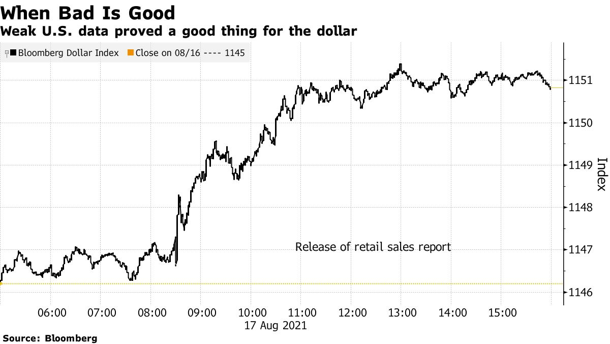 以最近的美国零售销售报告为例,该报告于8月17日发布。它比几乎所有预测都要疲弱。逻辑表明,这会导致美联储采取较不激进的政策,进而导致美元走软。然而,事实上,美元在那天上涨了。