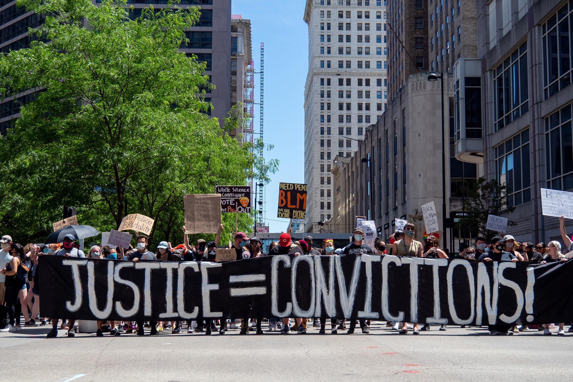 2020年6月,游行抗议乔治·弗洛伊德在法院前行进。