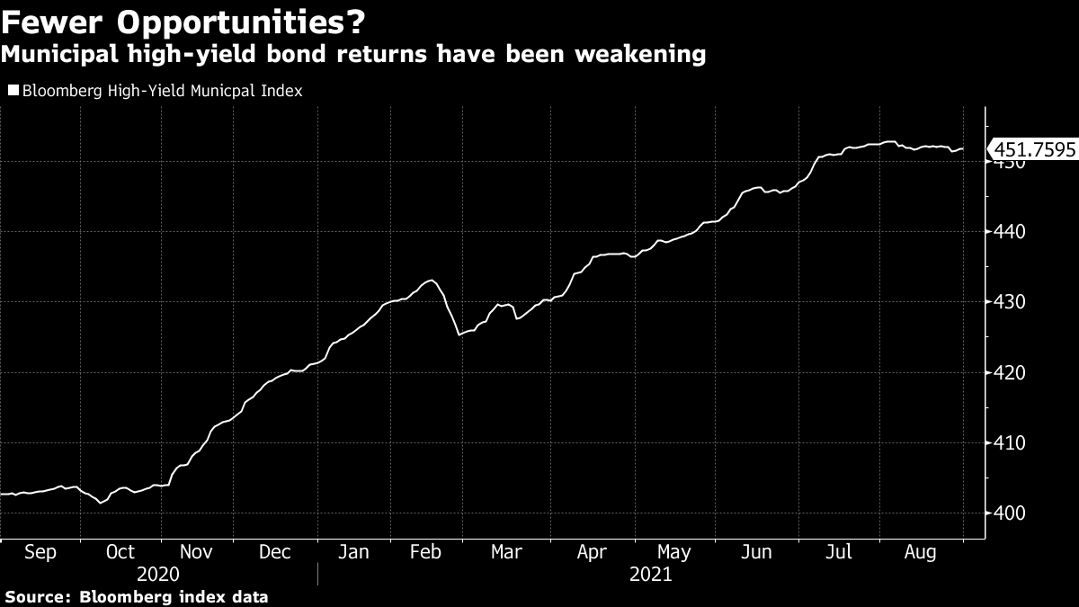 在市政基金中看到软性关闭并不常见,这表明高收益市场已经变得多么疯狂。今年投资者已经向这类基金注入了近180亿美元,垃圾市政指数的年度收益超过7%。根据彭博数据,Nuveen基金表现得更好——过去一年回报约15%,超过了98%的同行。