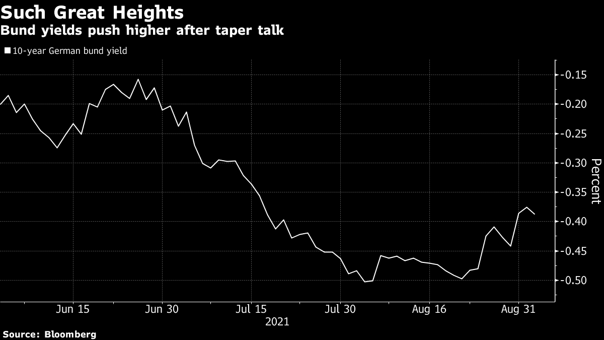 然而,尽管标普500指数创下历史新高,美国国债在鲍威尔上周五杰克逊霍尔表现后出现了反弹,欧洲投资者却并不那么兴奋。德国10年期国债收益率一度攀升至-37个基点,为7月中旬以来的最高水平。