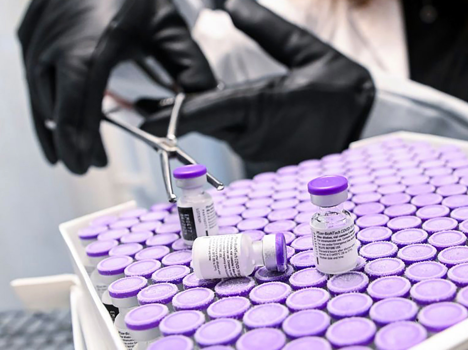 一名达特茅斯大学医学生正在给辉瑞疫苗注射器中装填疫苗(艾伦·J·沙本/洛杉矶时报/盖蒂图片社)