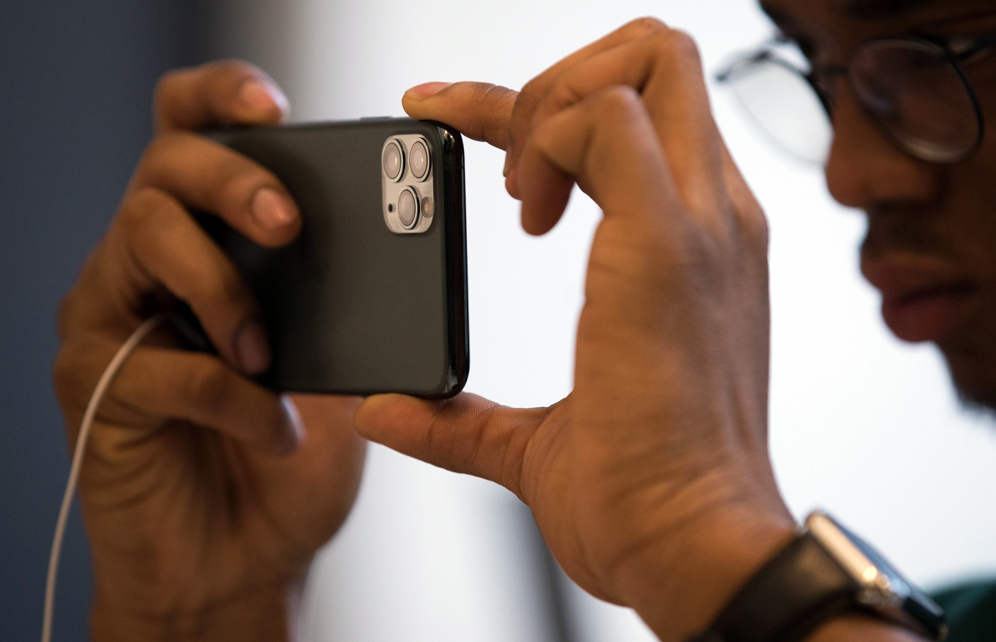 一位顾客用苹果iPhone拍照。