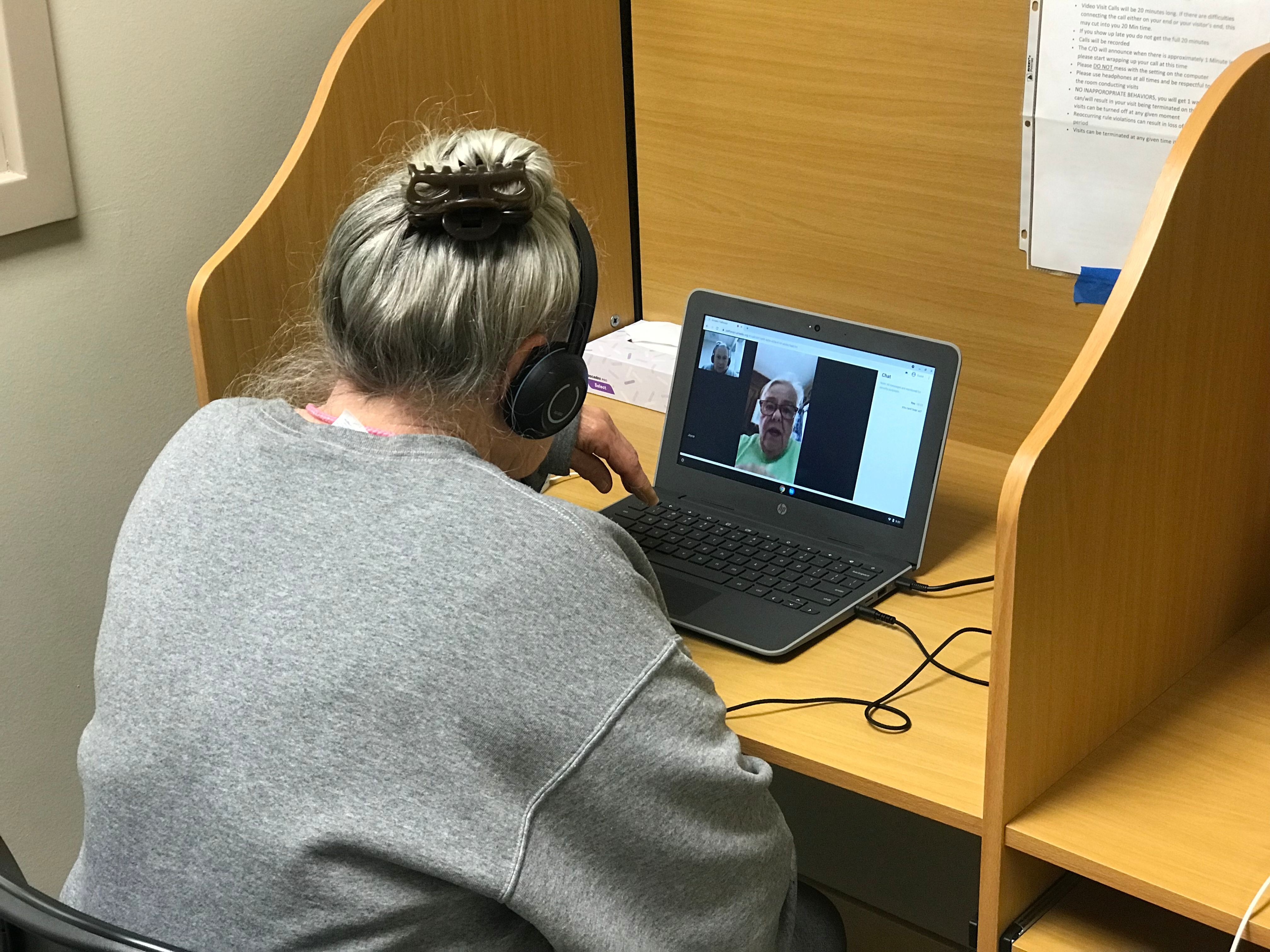 Judy White是第一个使用新视频技术与她的朋友Joyce Binder在爱荷华女子矫正所进行交流的人。
