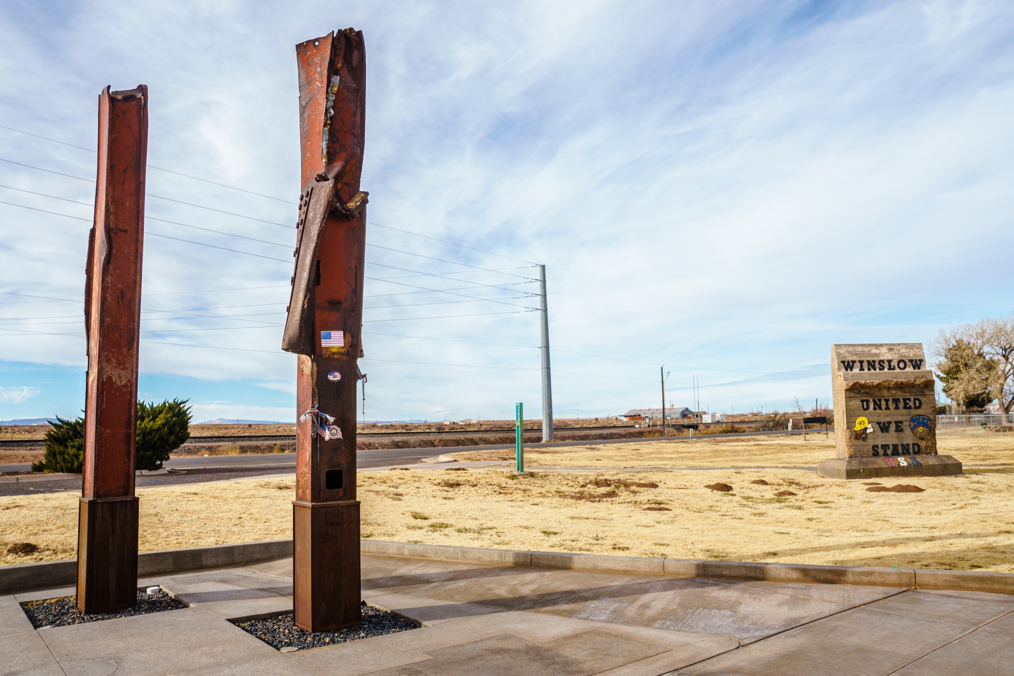 亚利桑那州温斯洛的9/11纪念碑。摄影师:Josh Brasted/Getty Images North America但WTC文物的传播及其融入全国各地的公共空间也反映了这一事件的重要性和规模。“对于无法前往曼哈顿的美国人来说,钢铁在全国范围内的分散有助于将失去一个明显的纽约标志转化为类似于总统遇刺事件的‘全国悲哀’,”霍勒兰夫妇写道。