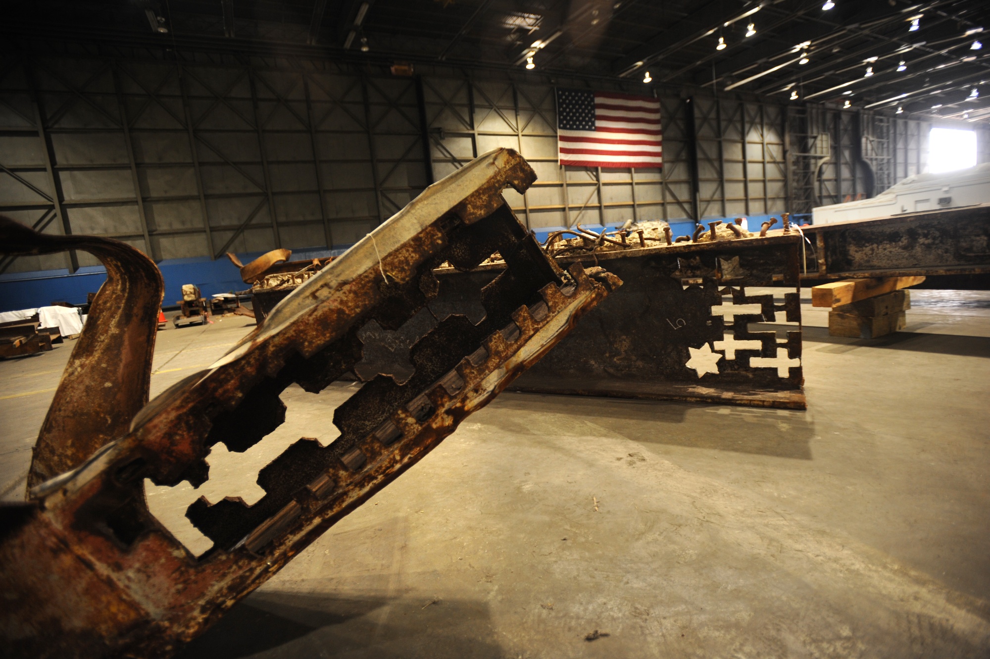 但大部分收藏品是金属:来自 双子塔本身的7000吨钢铁,存放在纽约皇后区的JFK机场一个飞机库里。这批宝藏成为了纪念制作的原材料。在一个持续到2016年的计划中,港务局征集了来自消防和警察部门、图书馆、小镇博物馆、军事和退伍军人组织以及地方政府等其他感兴趣团体的世界贸易中心文物请求。