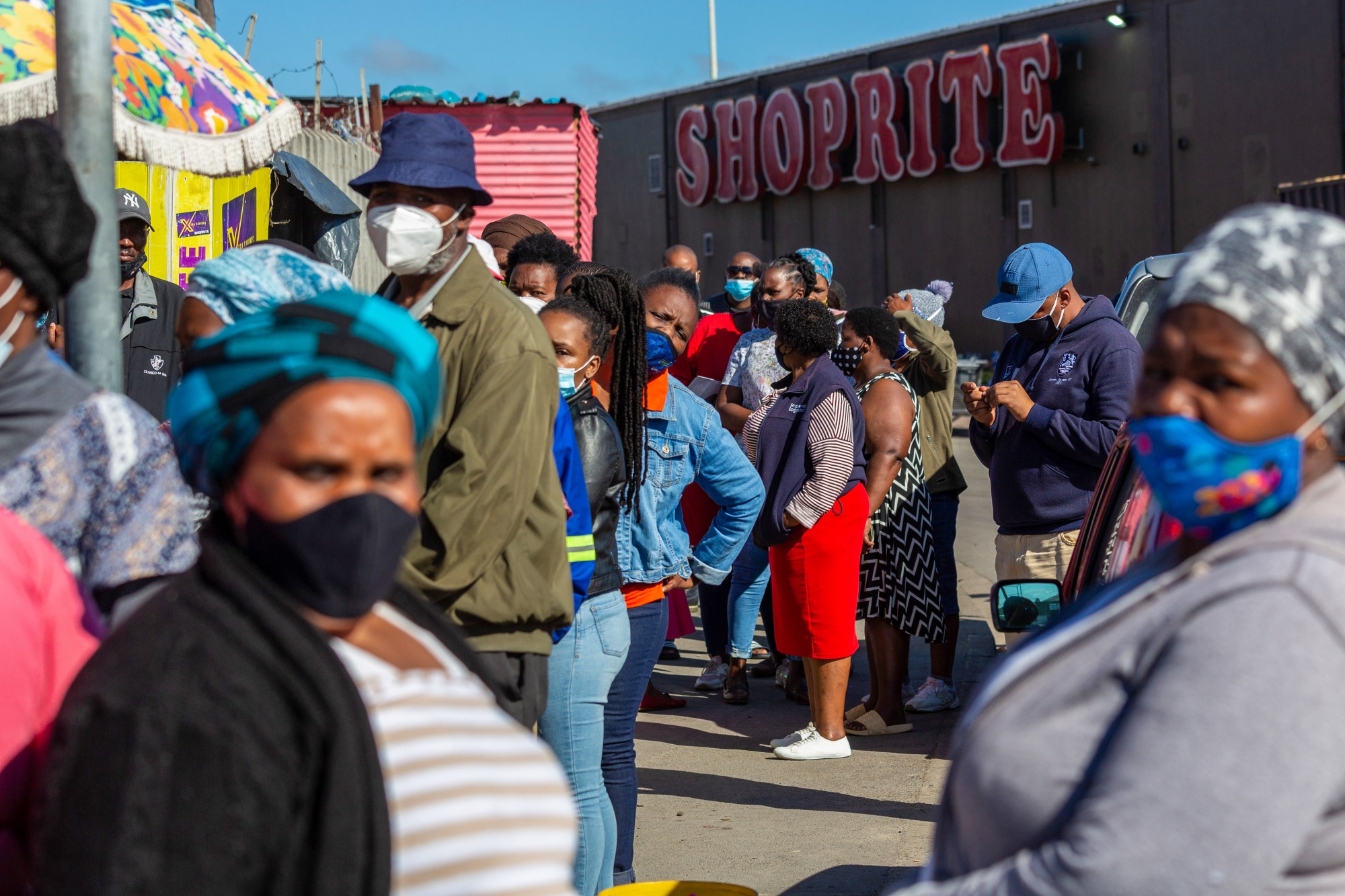 居民在开普敦Khayelitsha乡村社区卫生中心的疫苗接种点排队等候。摄影师:Dwayne Senior/Bloomberg