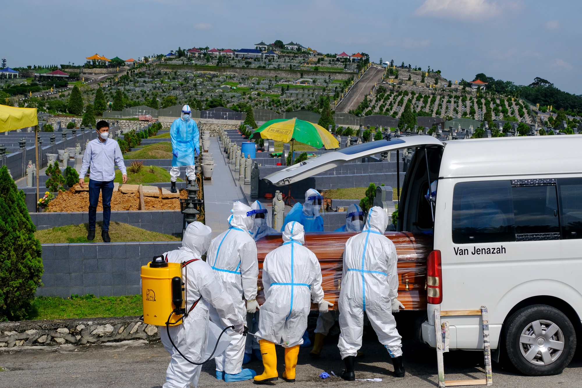 员工在马来西亚雪兰莪州梅鲁的仙境公园纪念公园为一名COVID-19受害者安葬,日期为8月30日。摄影师:Samsul Said/Bloomberg尽管经历了残酷的最初波次和相对较高的疫苗接种率,包括美国、英国、俄罗斯和以色列在内的国家正面临创纪录的病例数。疫苗接种有助于减轻严重病例和死亡的发生率,但感染激增意味着病毒正在传播给年轻人和其他未接种疫苗的人,导致这些群体严重疾病的发病率上升。