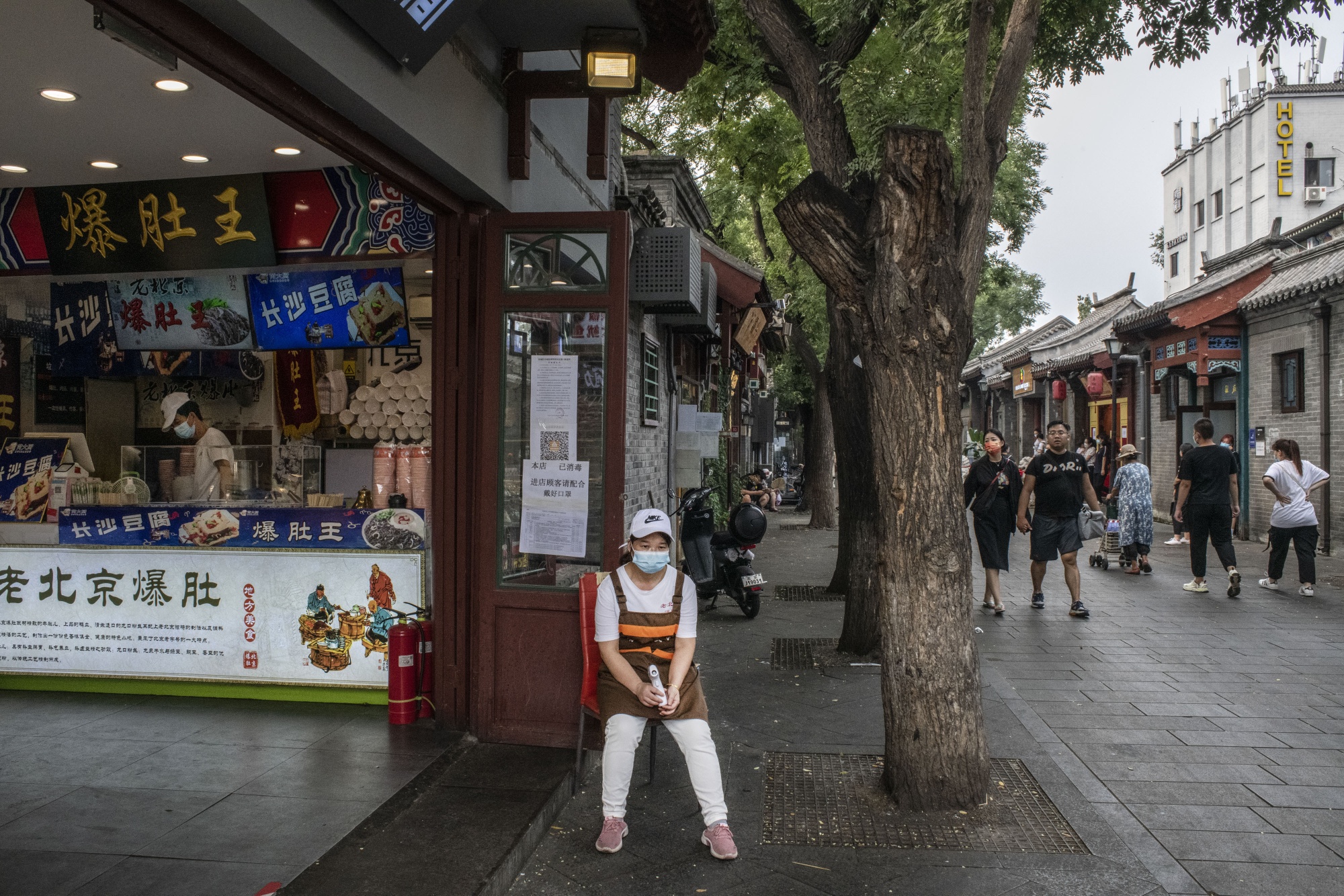 一名戴着口罩的餐厅工作人员在北京市中心使用体温计,时间是8月8日。摄影师:Gilles Sabrie/Bloomberg“最终的过程不会是统一的,”查特斯说。这场大流行“不仅是生物现象,也是政治和社会现象。”