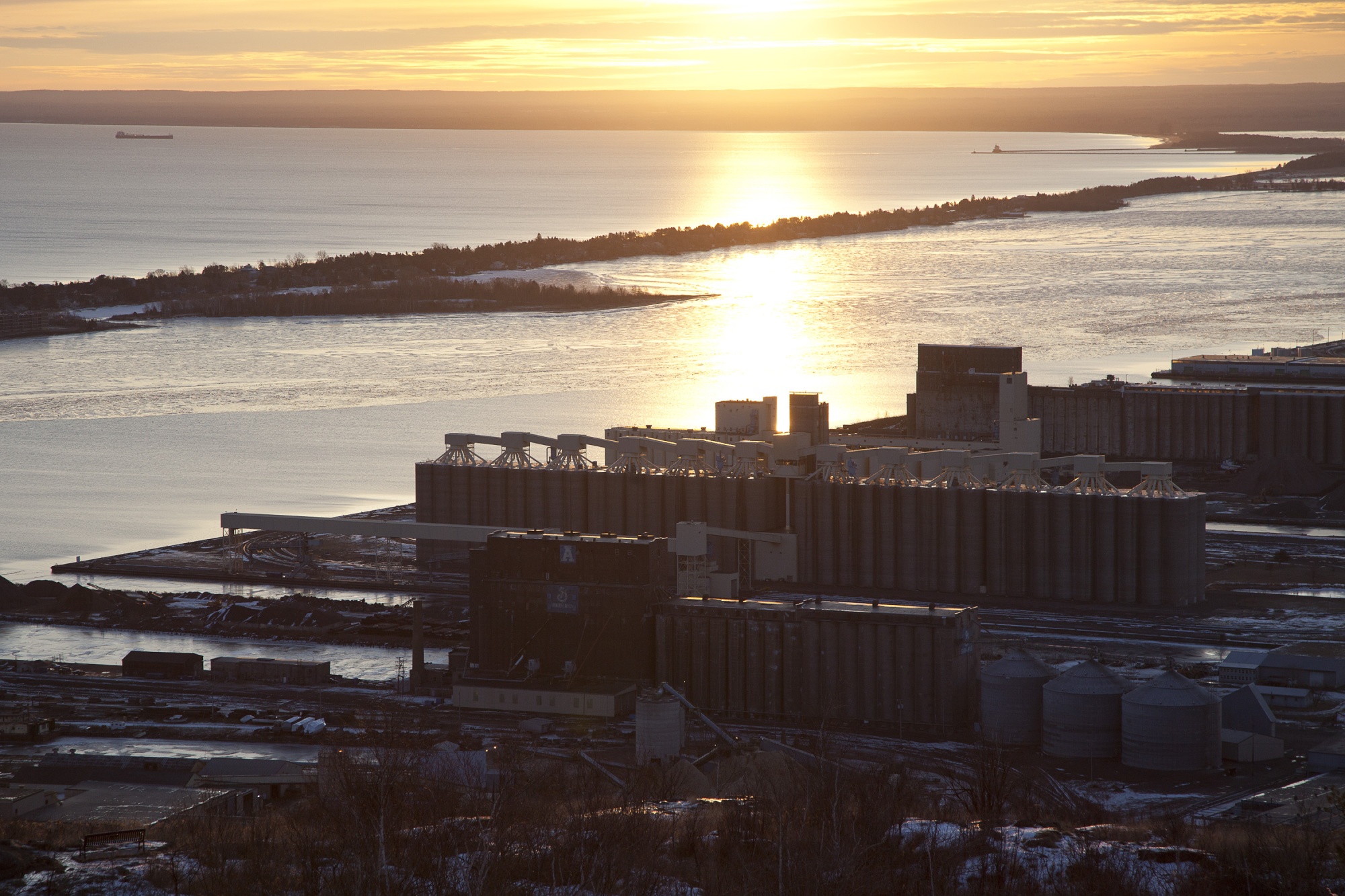 从明尼苏达州杜卢斯市眺望苏必利尔湖的景色,这座城市被誉为潜在的气候避难所。