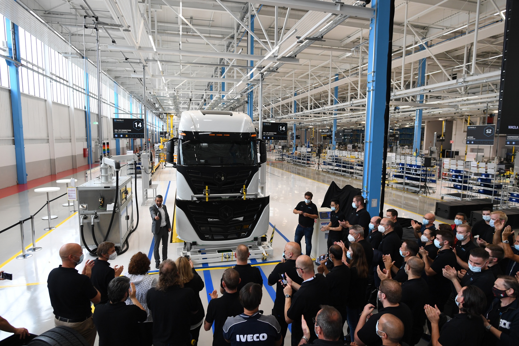 2021年9月15日,德国乌尔姆的尼古拉特雷电池电动卡车。摄影师:Andreas Gebert/Bloomberg在Salzgitter以南约300英里的乌尔姆,尼古拉在周三向公众展示了即将建造其电动大型卡车的生产线。这家美国公司展示了其合作伙伴IVECO正在准备在年底开始批量生产尼古拉特雷重型卡车的德国工厂。首批电池电动车型将于明年初交付给美国客户,燃料电池版本预计将于2023年底推出,Elisabeth Behrmann 写道。在尼古拉的创始人特雷弗·米尔顿被指控证券欺诈之后,尼古拉正试图翻开新的一页。
